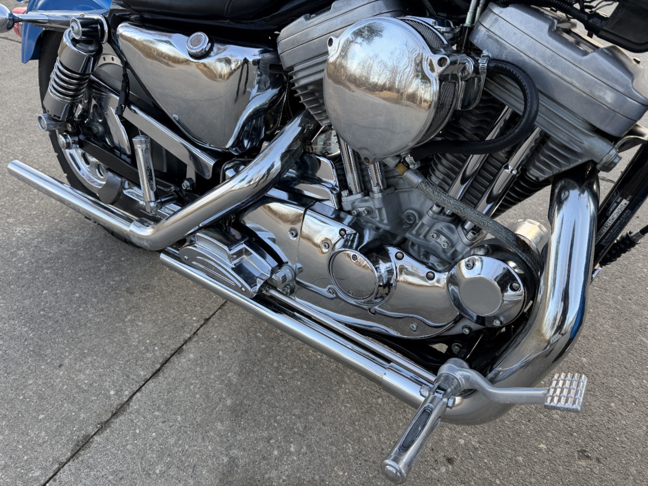 runs rides good .... few light scuffs patched seat cover but over all clean bike ... has a 21in twisted spoke front wheel .... has ok rear tire new front tire .... carb with intake kit tuned with custom drag pipes ..... lots of chrome covers all over .... removeable lowering links with progressive shocks low seat height .... brand new battery ready to go .... came in with only 1 key - we make motorcycle keys while you wait anytime ..... see video in action