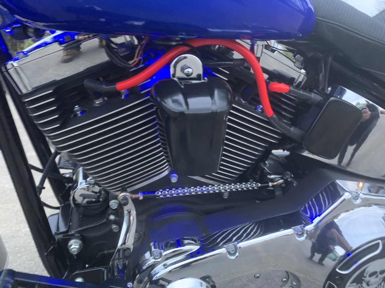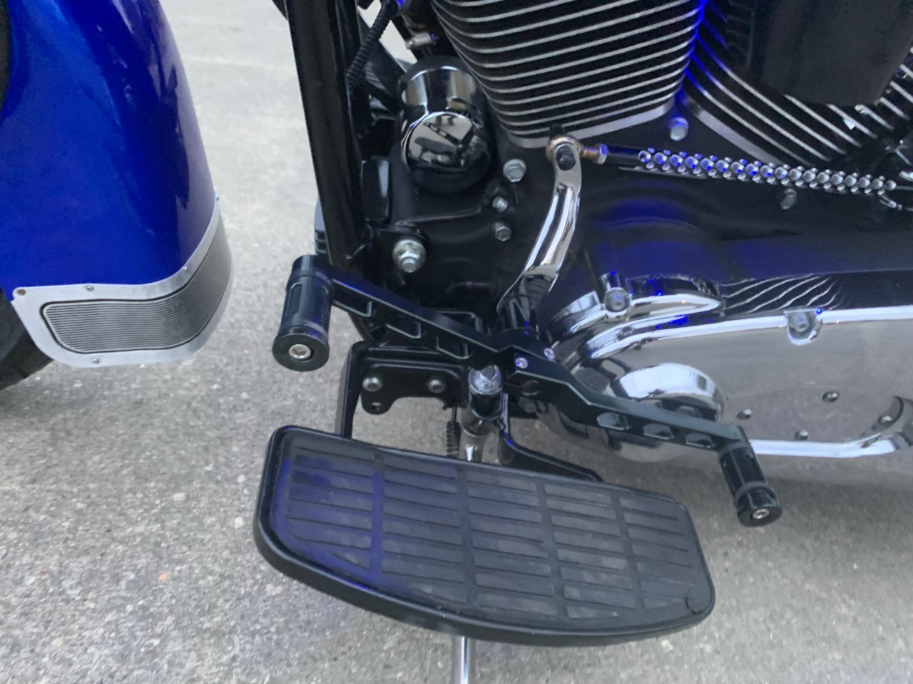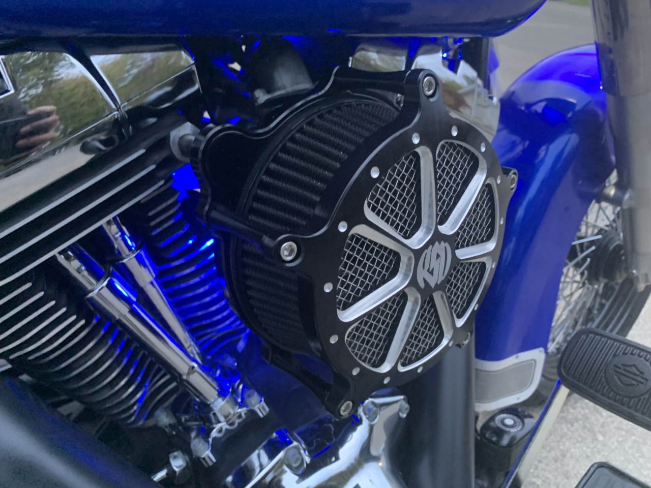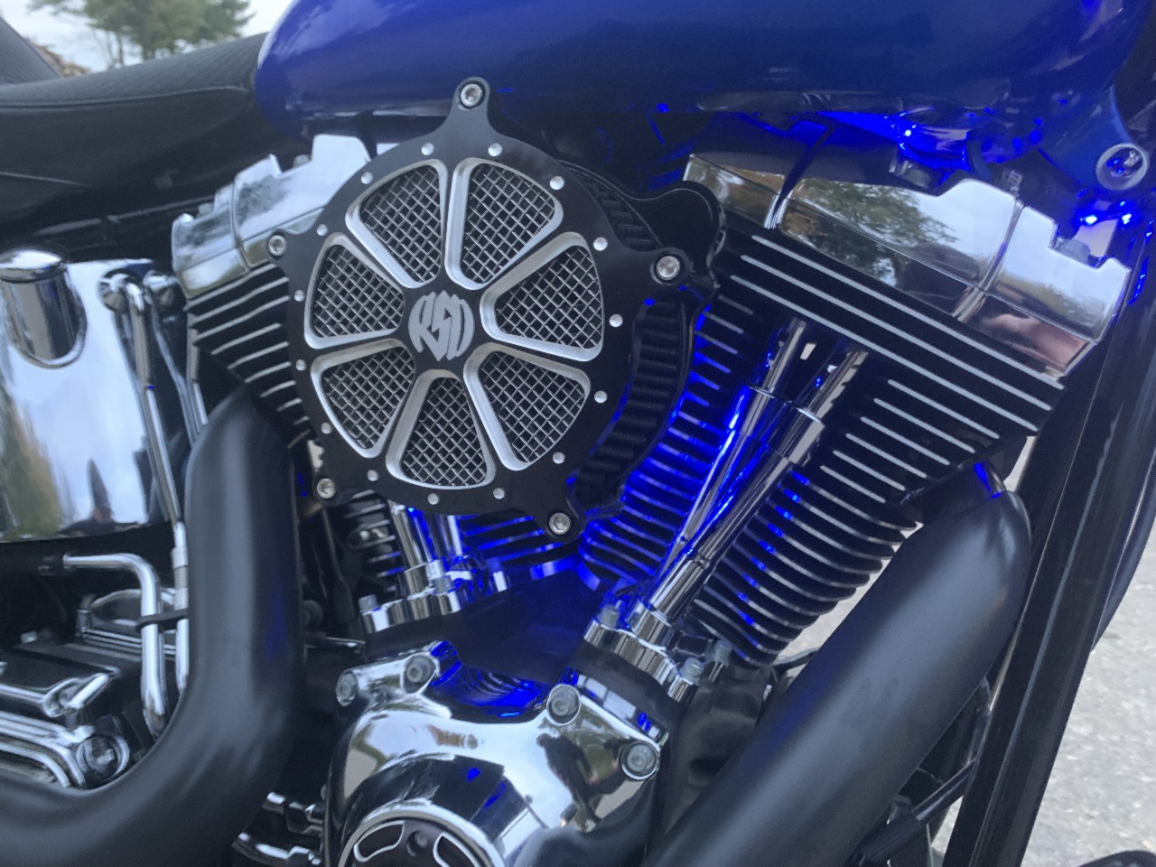 runs rides great .... This is one really cool looking bike .... the speedo sensor is messed up or the wrong one and the speedo is reading 100x the speed and mileage it was registering over 120 mph just going 10 mph in the parking lots and racked up 5 miles just test riding it .... So the bike looks sounds like it might have around 10k miles on it maybe less ..... few light scratches right side ... over all super clean bike .... has good tires .... all upgraded led headlight spot lights with integrated turn signals & tail light also integrated ..... custom black out on chrome spoke wheels looks sharp .... vance & hines short shot exhaust looks god sounds great tuned fuel injection with rsd billet intake runs strong .... burly handlebars .... lowering link sits a little lower feel & looks great .... matching blue neon led under glow looks sharp ..... corbin seat very high dollar .... custom grips & skull covers & kick stand .... came in unlocked but no keys .... we make keys while you wait anytime ..... see video