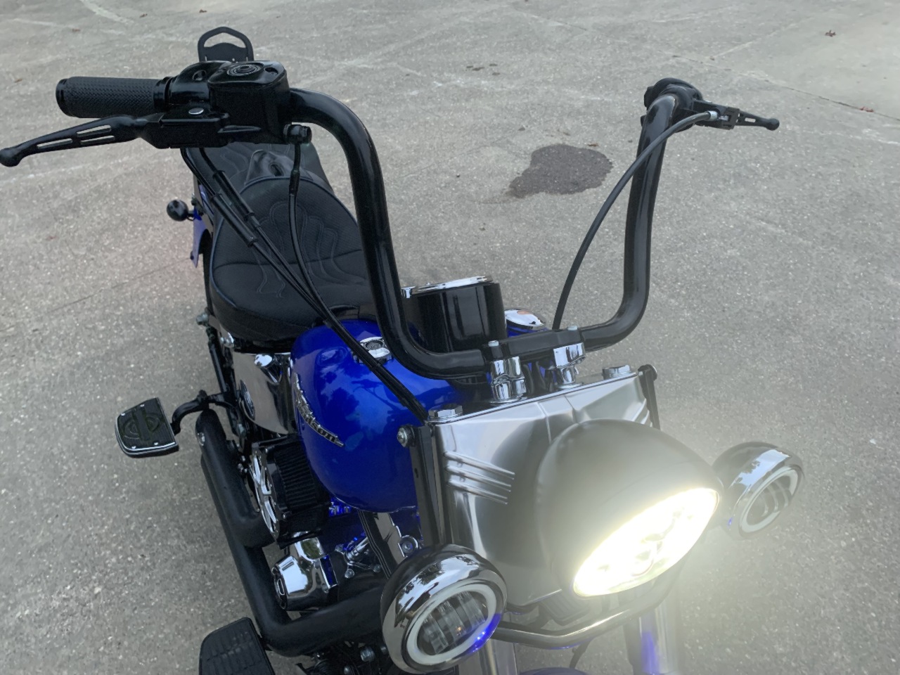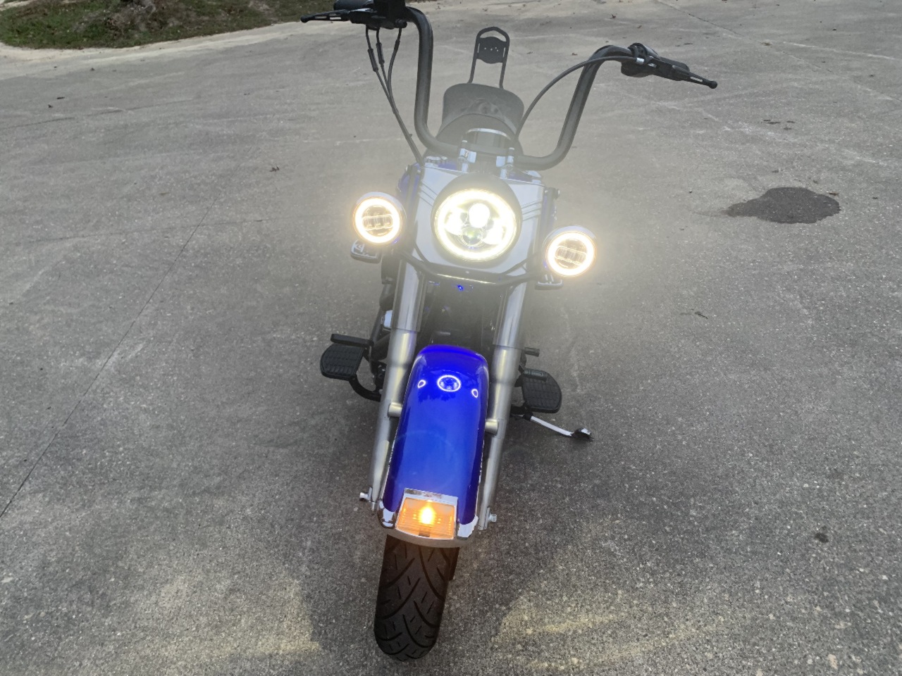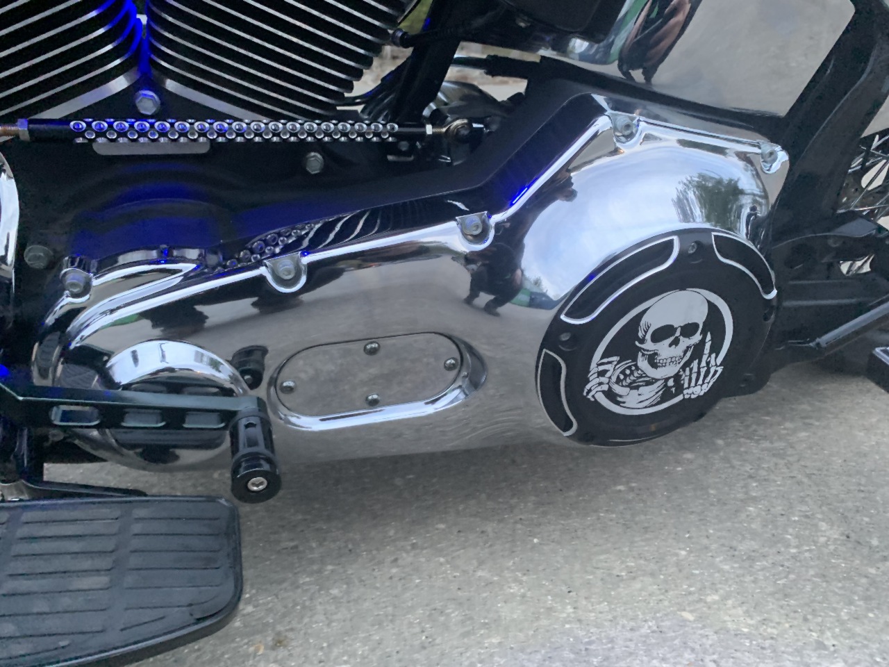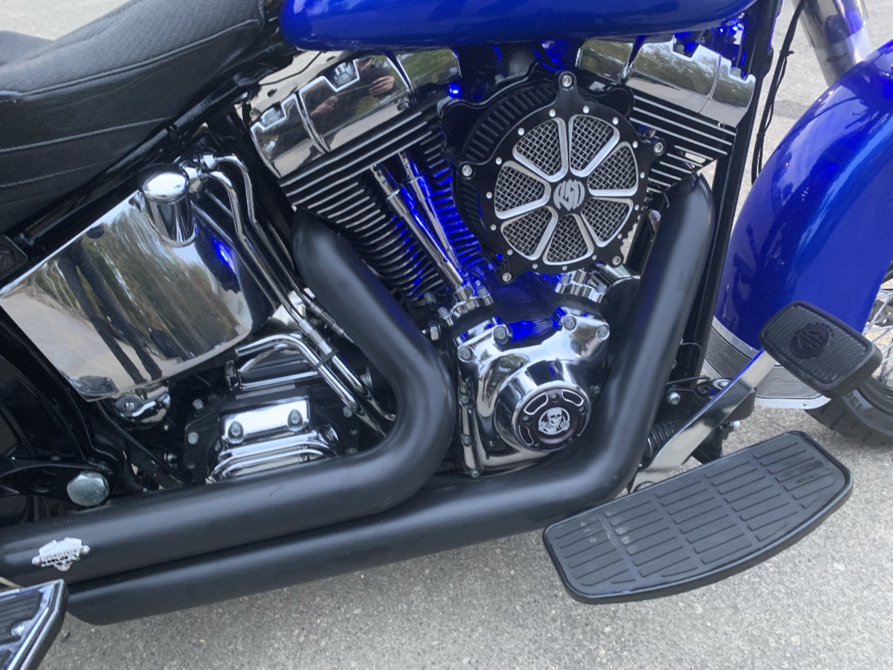 runs rides great .... This is one really cool looking bike .... the speedo sensor is messed up or the wrong one and the speedo is reading 100x the speed and mileage it was registering over 120 mph just going 10 mph in the parking lots and racked up 5 miles just test riding it .... So the bike looks sounds like it might have around 10k miles on it maybe less ..... few light scratches right side ... over all super clean bike .... has good tires .... all upgraded led headlight spot lights with integrated turn signals & tail light also integrated ..... custom black out on chrome spoke wheels looks sharp .... vance & hines short shot exhaust looks god sounds great tuned fuel injection with rsd billet intake runs strong .... burly handlebars .... lowering link sits a little lower feel & looks great .... matching blue neon led under glow looks sharp ..... corbin seat very high dollar .... custom grips & skull covers & kick stand .... came in unlocked but no keys .... we make keys while you wait anytime ..... see video