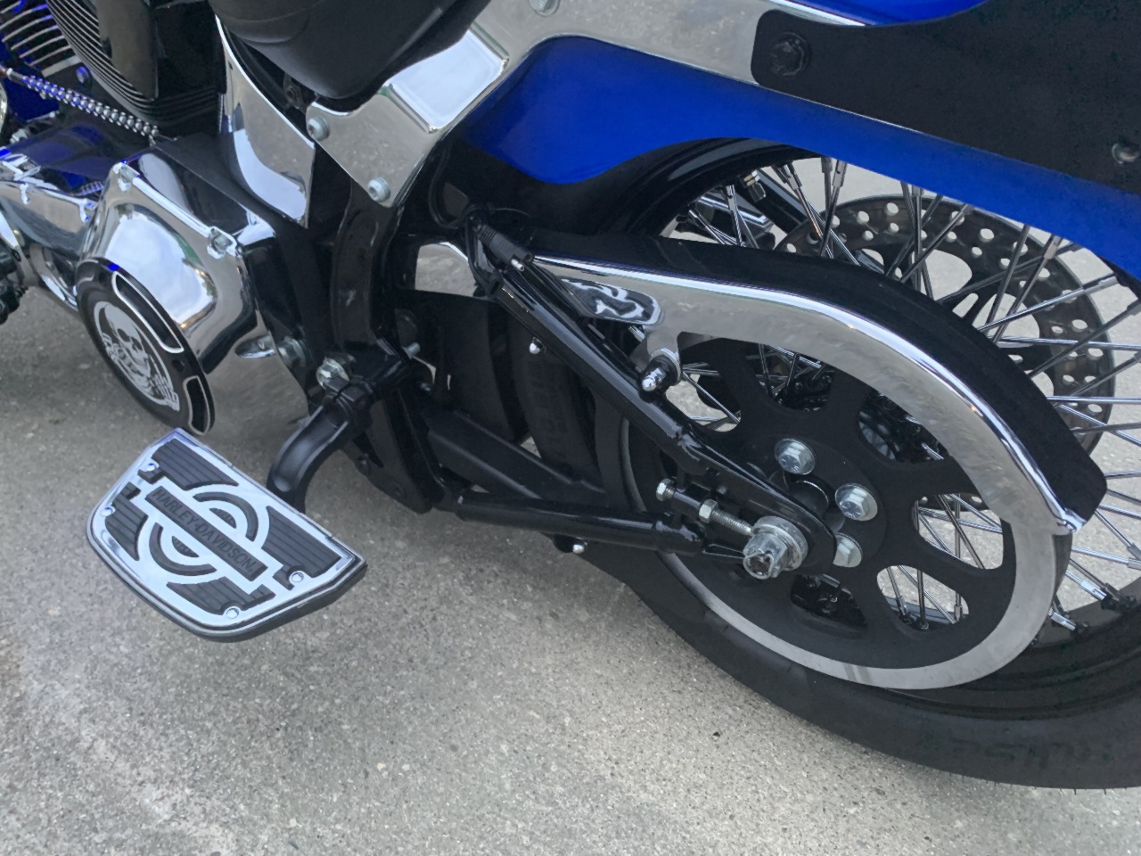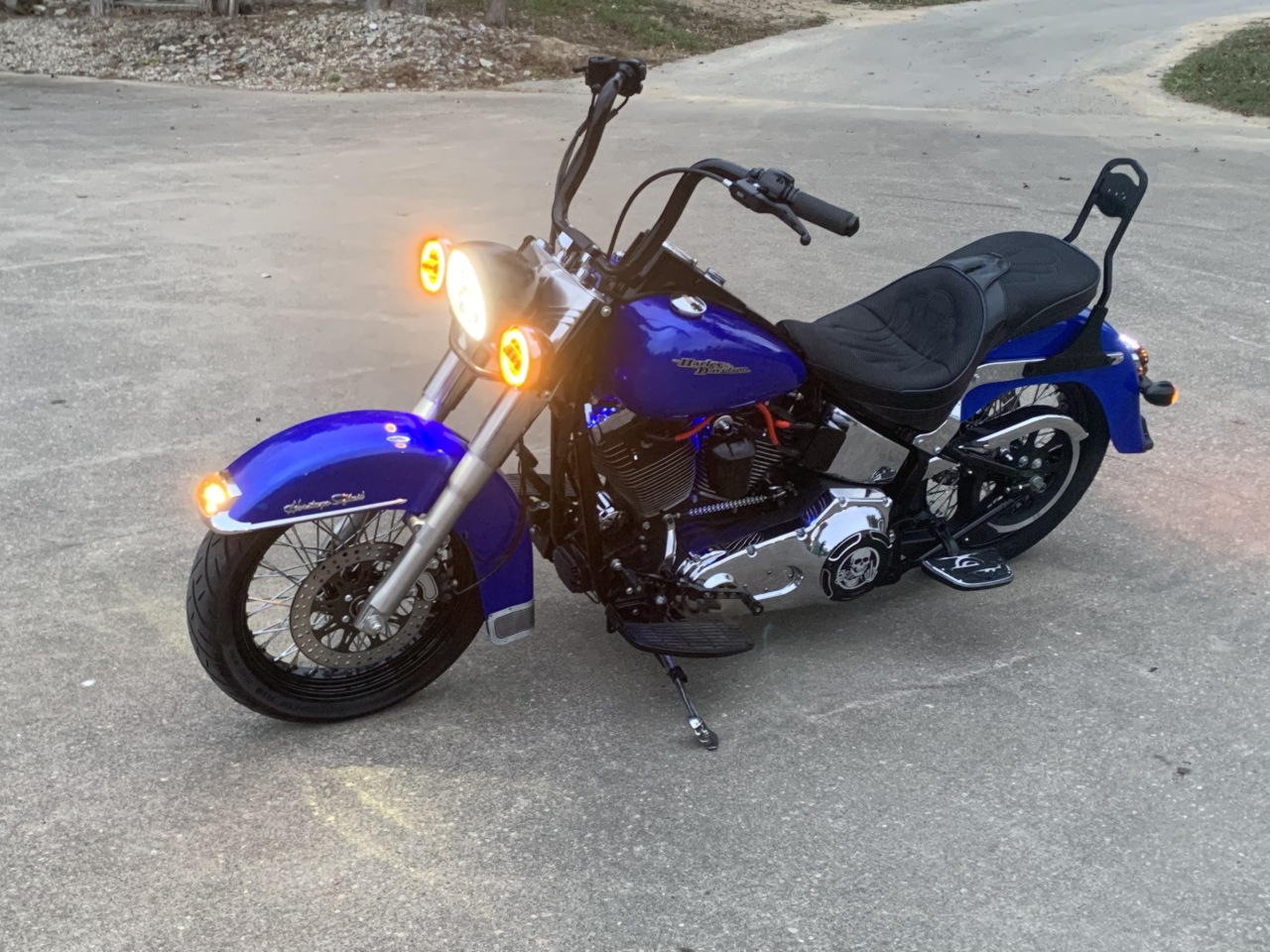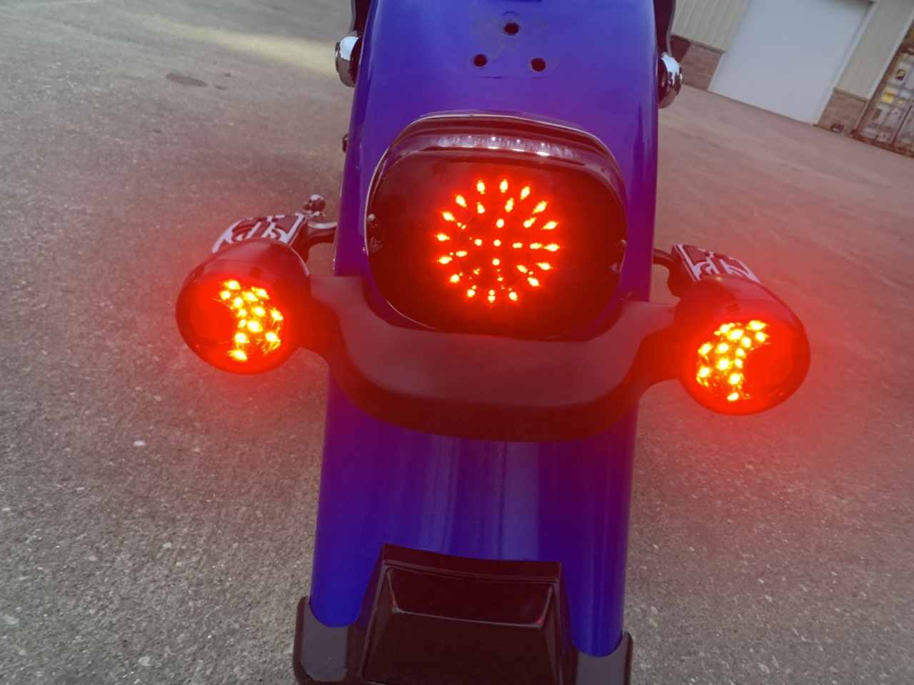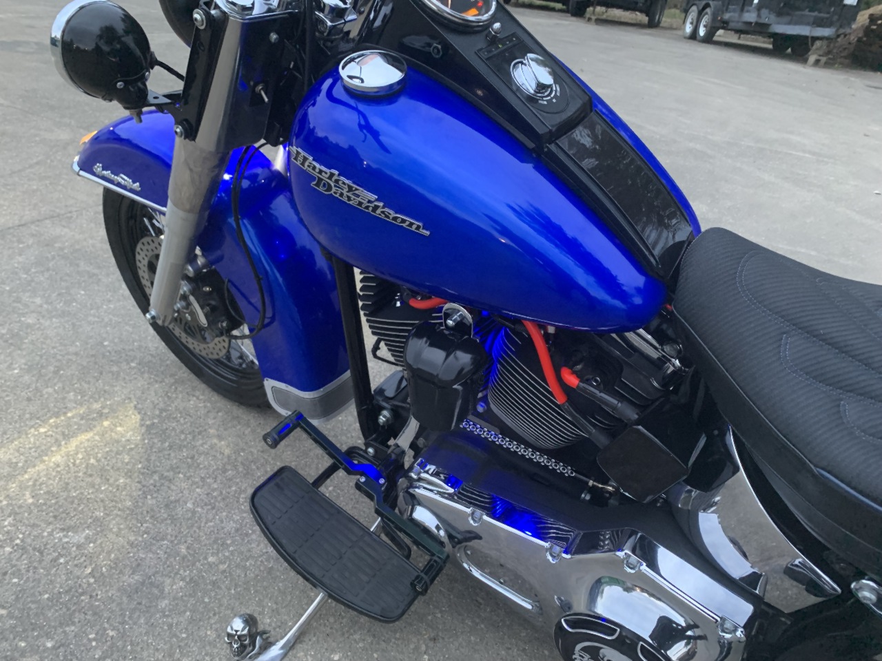 runs rides great .... This is one really cool looking bike .... the speedo sensor is messed up or the wrong one and the speedo is reading 100x the speed and mileage it was registering over 120 mph just going 10 mph in the parking lots and racked up 5 miles just test riding it .... So the bike looks sounds like it might have around 10k miles on it maybe less ..... few light scratches right side ... over all super clean bike .... has good tires .... all upgraded led headlight spot lights with integrated turn signals & tail light also integrated ..... custom black out on chrome spoke wheels looks sharp .... vance & hines short shot exhaust looks god sounds great tuned fuel injection with rsd billet intake runs strong .... burly handlebars .... lowering link sits a little lower feel & looks great .... matching blue neon led under glow looks sharp ..... corbin seat very high dollar .... custom grips & skull covers & kick stand .... came in unlocked but no keys .... we make keys while you wait anytime ..... see video