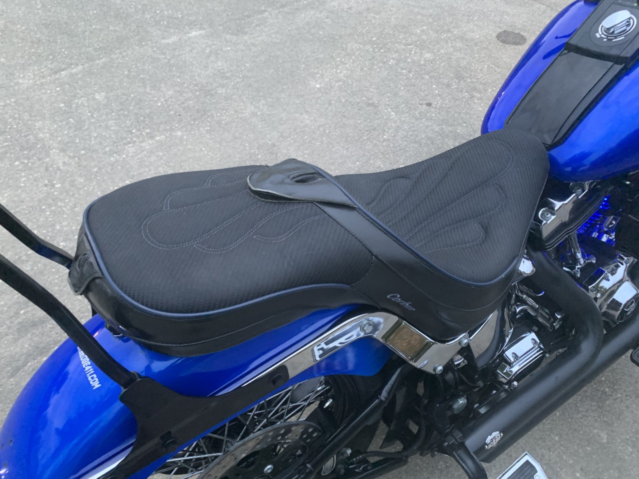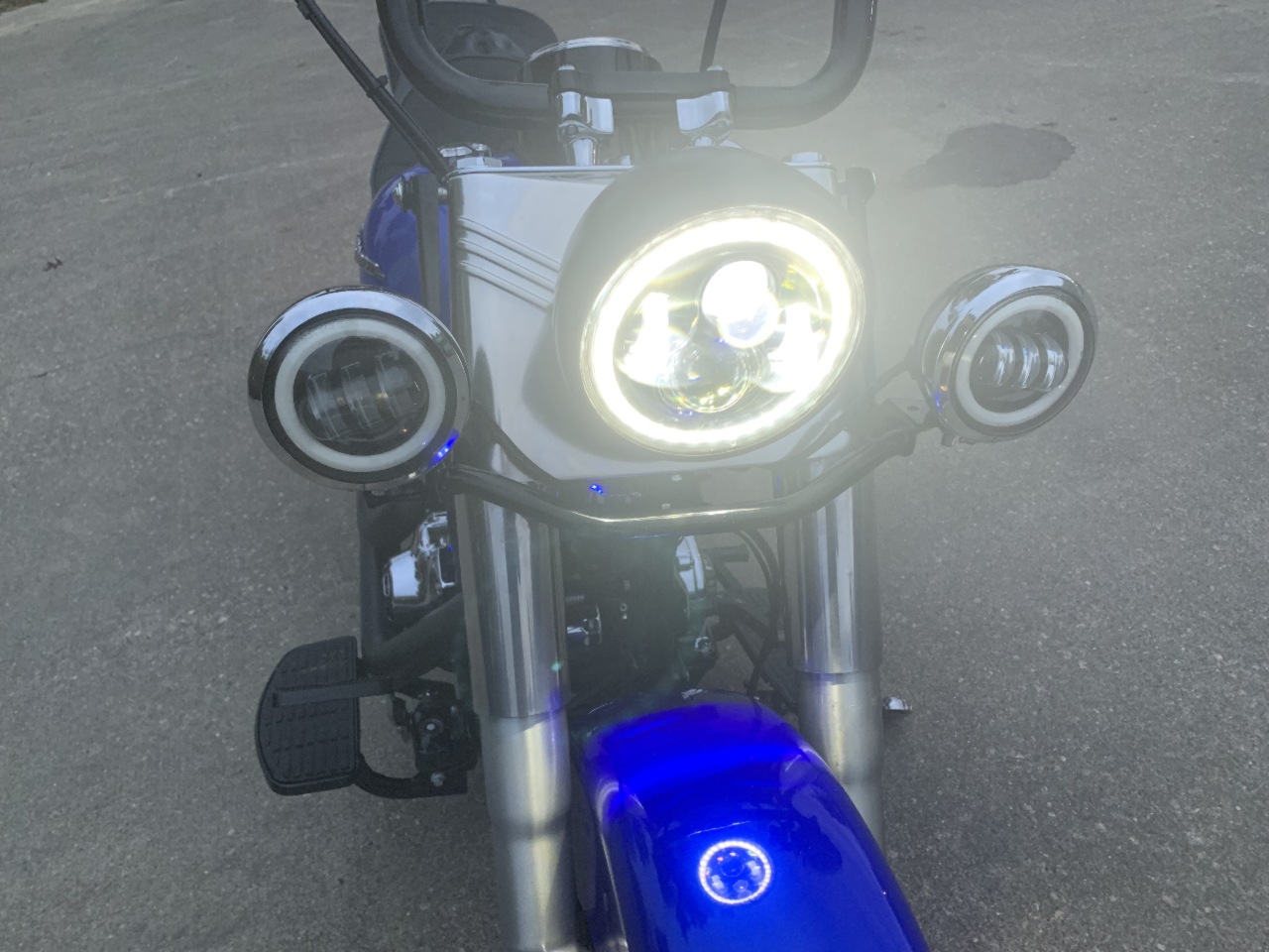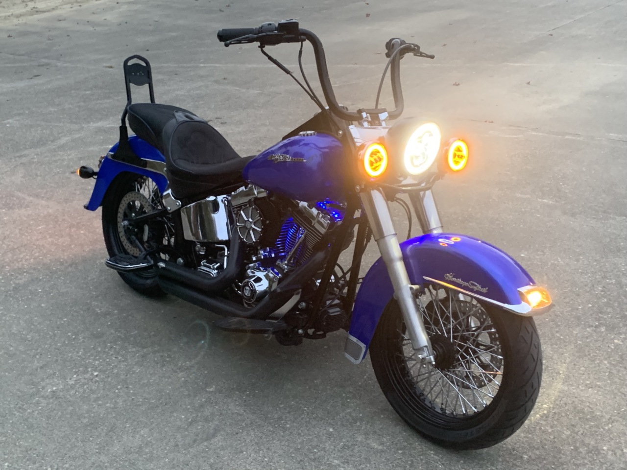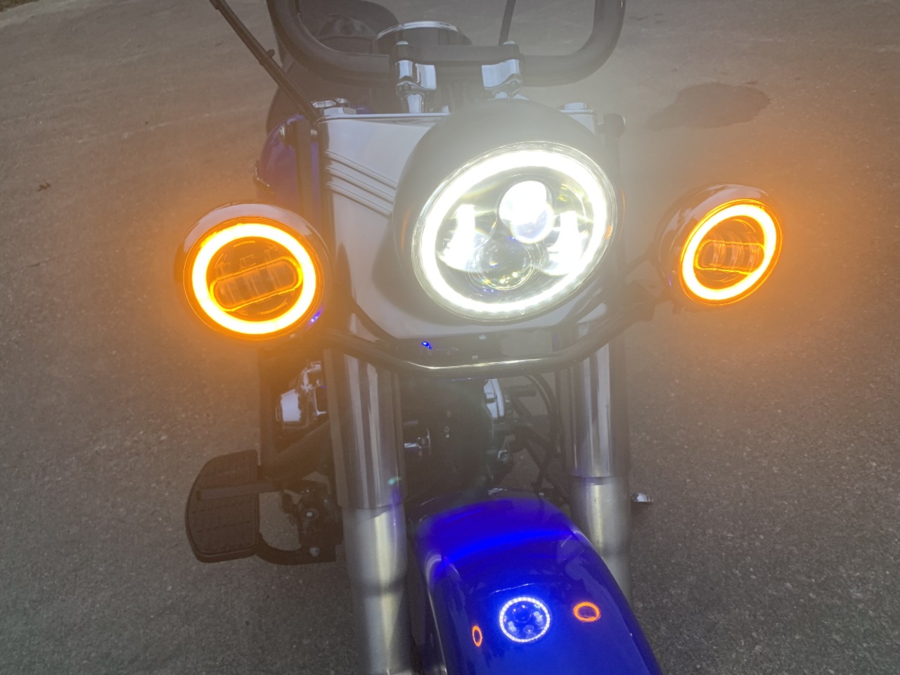runs rides great .... This is one really cool looking bike .... the speedo sensor is messed up or the wrong one and the speedo is reading 100x the speed and mileage it was registering over 120 mph just going 10 mph in the parking lots and racked up 5 miles just test riding it .... So the bike looks sounds like it might have around 10k miles on it maybe less ..... few light scratches right side ... over all super clean bike .... has good tires .... all upgraded led headlight spot lights with integrated turn signals & tail light also integrated ..... custom black out on chrome spoke wheels looks sharp .... vance & hines short shot exhaust looks god sounds great tuned fuel injection with rsd billet intake runs strong .... burly handlebars .... lowering link sits a little lower feel & looks great .... matching blue neon led under glow looks sharp ..... corbin seat very high dollar .... custom grips & skull covers & kick stand .... came in unlocked but no keys .... we make keys while you wait anytime ..... see video