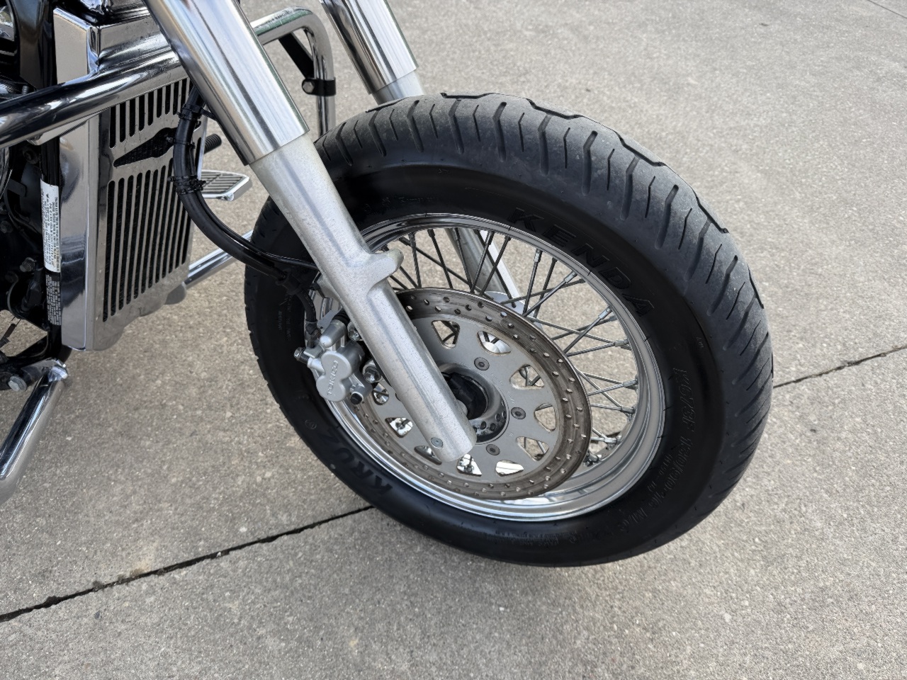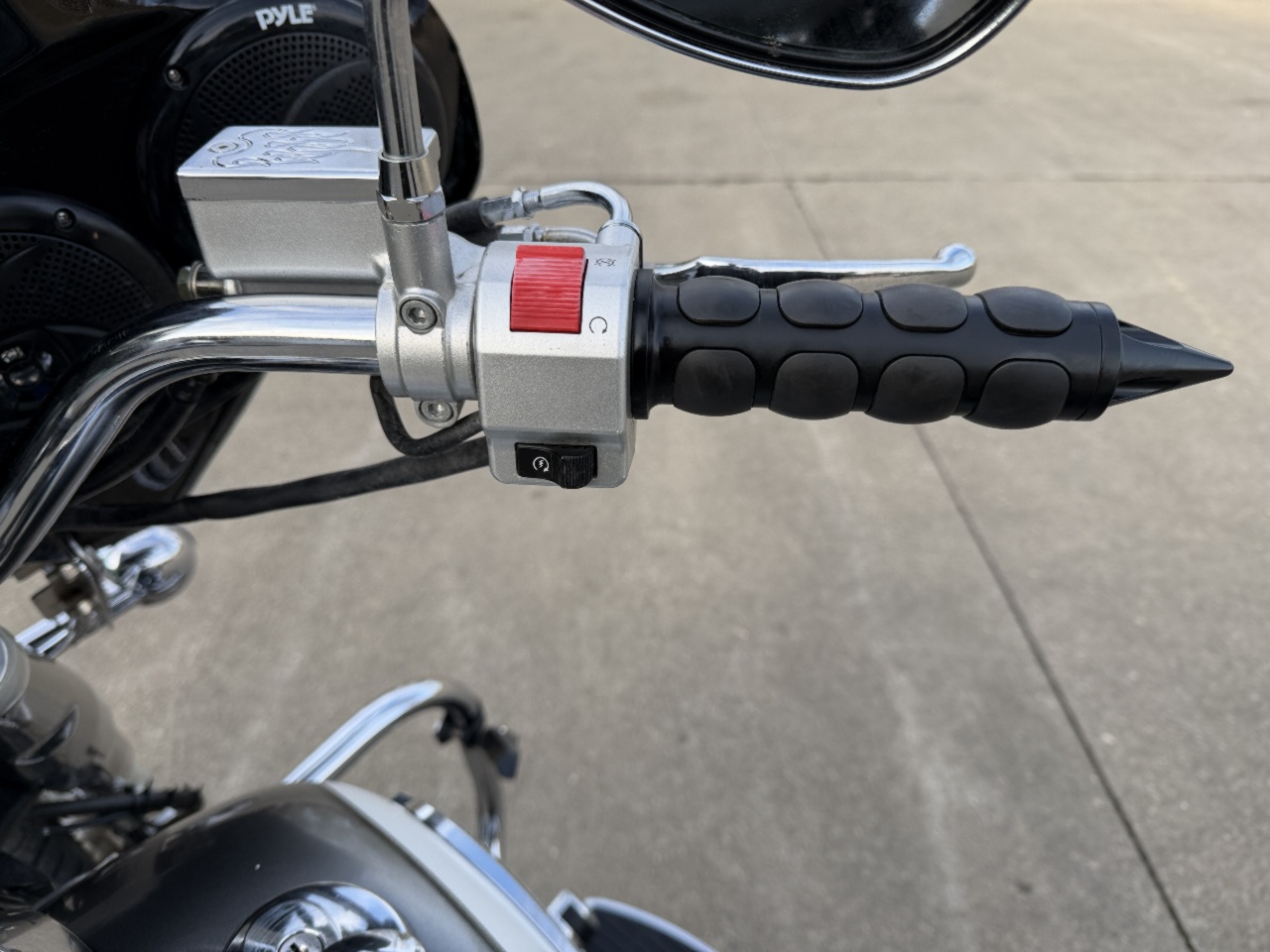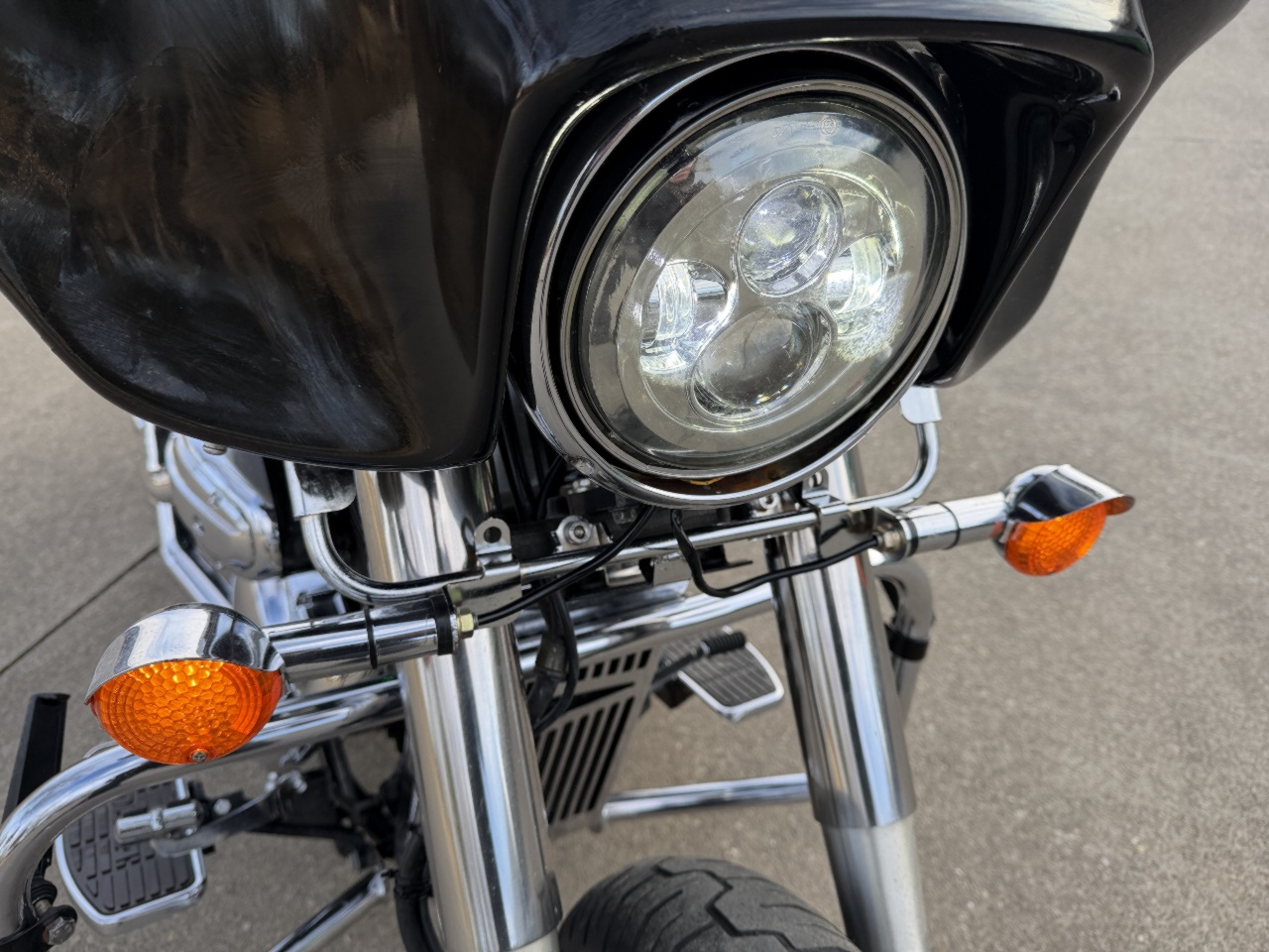 runs rides great .... missing front fender crack in fairing but the fairing was an added on extra anyways .... has good front tire new rear tire .... led headlight .... full fairing with pyle radio & speakers .... tinted windshield with bags ... cell phone holder with wireless charging .... custom grips ... floor boards front & rear .... highway bars with pegs ... viking saddlebags ... back rest with rack .... vance & hines exhaust sounds great .... brand new battery ready to go .... came in with only 1 key - we make motorcycle keys while you wait .... see video