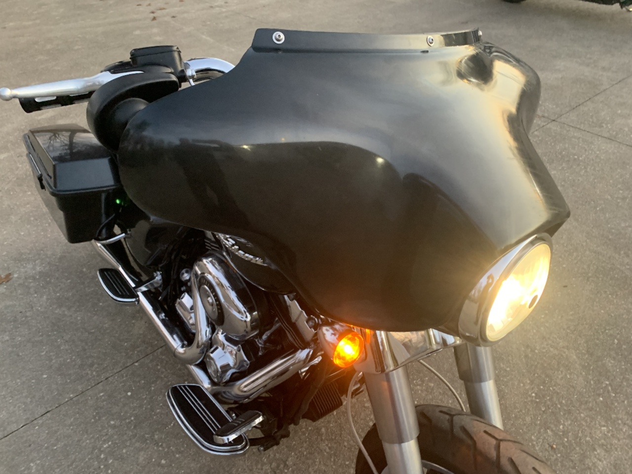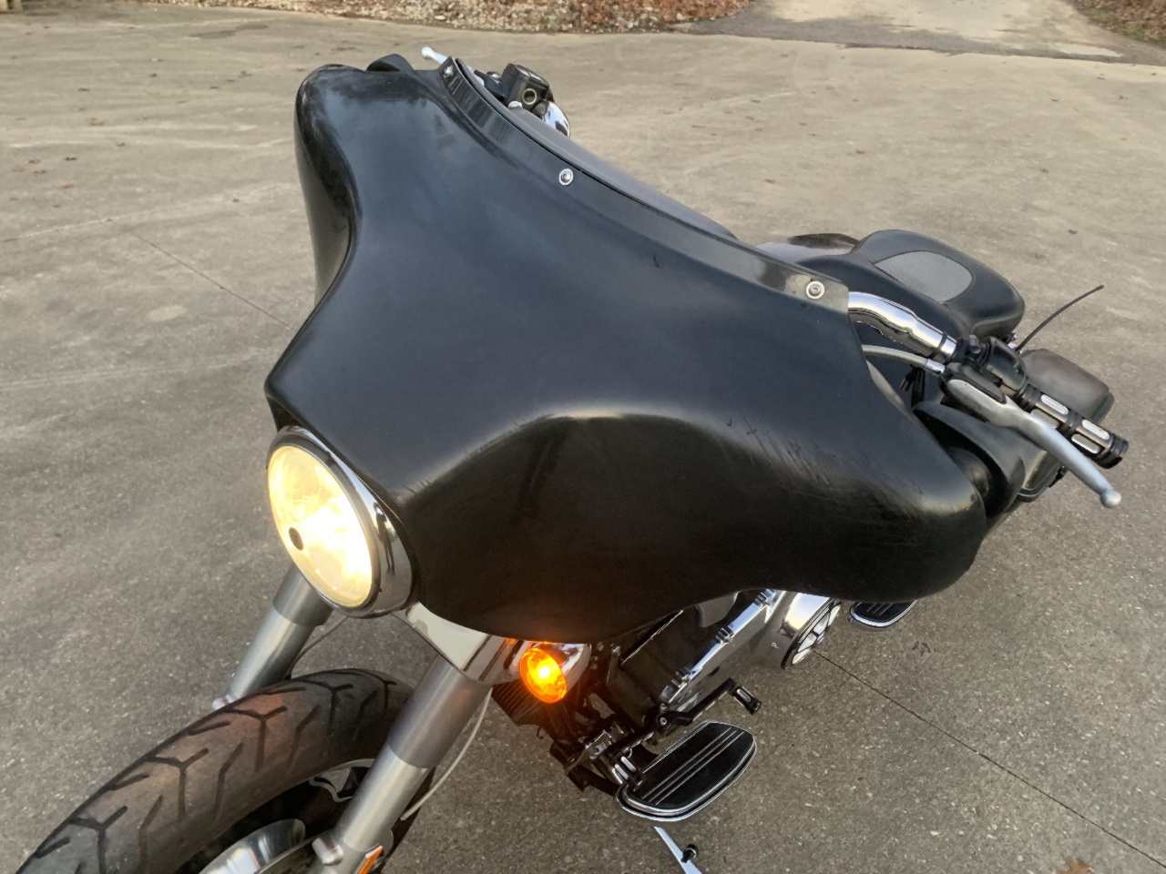 runs rides great .... missing front fender but we have them in stock new & scratches left side spray painted saddlebag .... has good tires ... 96in with 6 speed rcx exhaust tuned fuel injection .... streamliner floor boards front & rear .... burly handlebars with alloy grips ... harley quick docking rear fender mounts already installed .... matching axle caps - derby cover - shifters ... kenwood radio .... 2 keys & 1 fob - we sell & program harley fobs & make keys while you wait .... see video