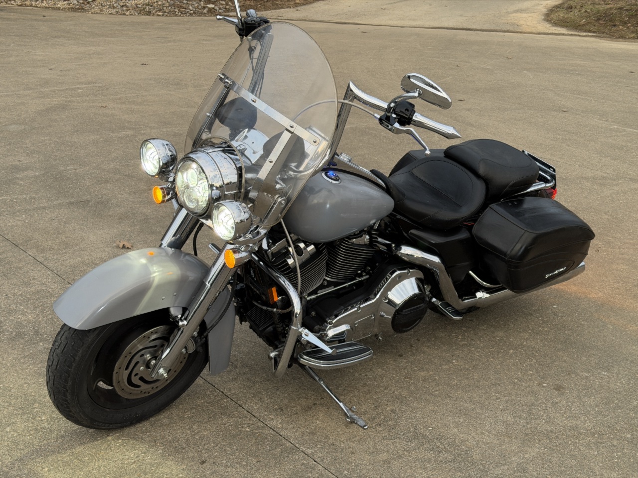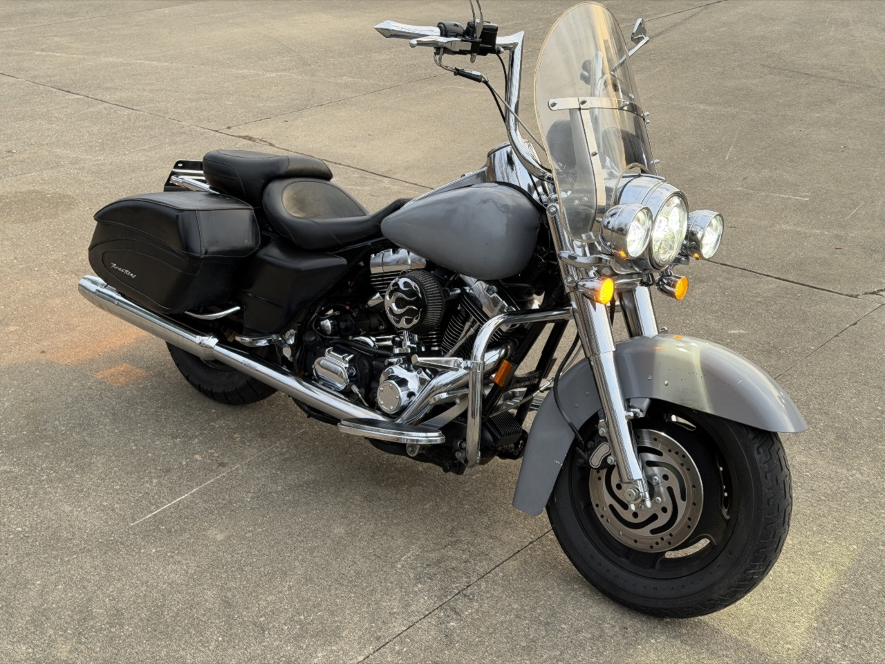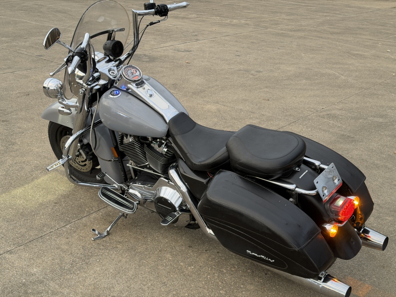 runs rides great .... clear title ready to go .... all the fenders tank have been spray painted - over all the rest of the bike is super clean .... has good front tire brand new rear tire still has the fuzzies on it .... highway bars with pegs ... all led headlight & spot lights .... chrome forks .... meathook handlebars ... quick release harley windshield ... hard leather saddlebags .... freedom true dual exhaust tuned fuel injection with custom willie-g flame intake .... upgraded factory tach speedo adjustable back ground lighting .... blue tooth sound system ... came in unlock but no keys - it will need keys made to lock it up - we make motorcycle keys while you wait ..... see video in action