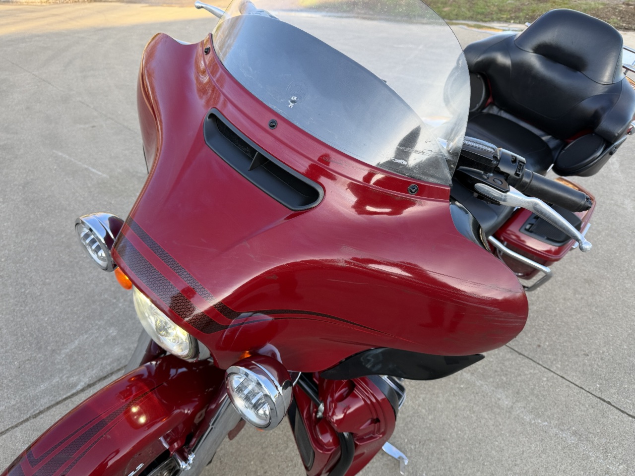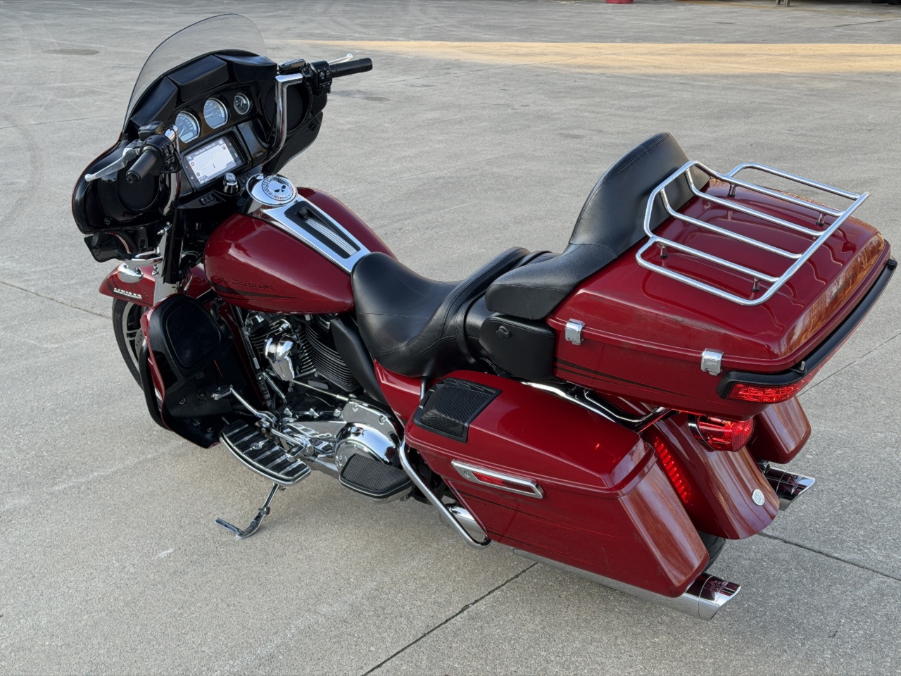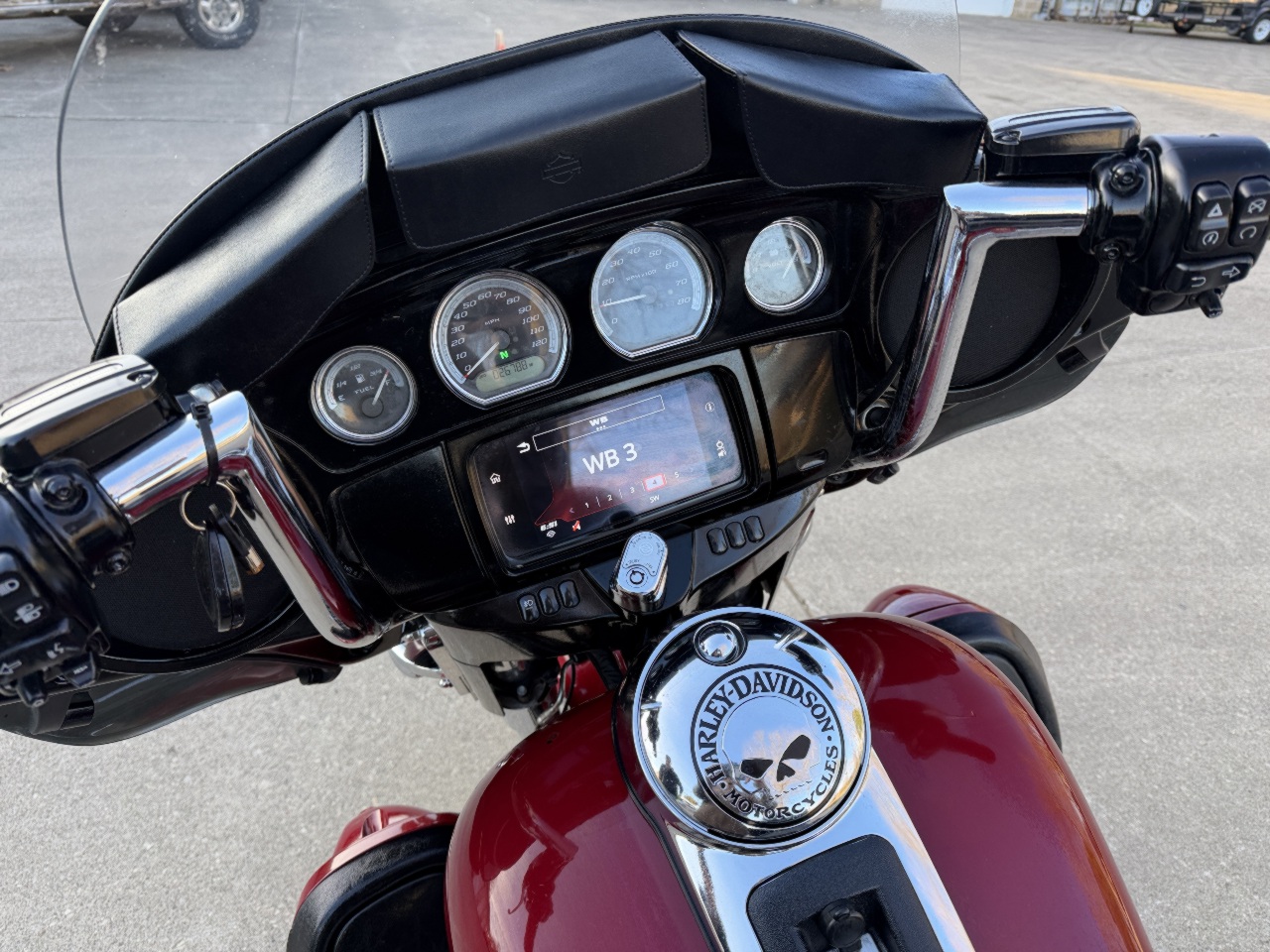 runs rides great .... dings on fenders scratches left side .... has good tires ... 114 with 6 speed tuned fuel injection with tab exhaust & stage 1 intake kit - sounds great .... seat heat shields .... willie-g floor boards caps etc .... chrome forks & axle caps ... tourpak rack & liner with 12v power outlet .... speaker lids already installed .... meethook handlebars .... heated grips ... touring windshield with hd magnetic close bags .... touch screen with blue tooth gps fuel bike info & more .... all led headlight & spots & filler strip lights .... came in with only 1 fob & 1 key - we sell & program harley fobs & make keys while you wait .... see video