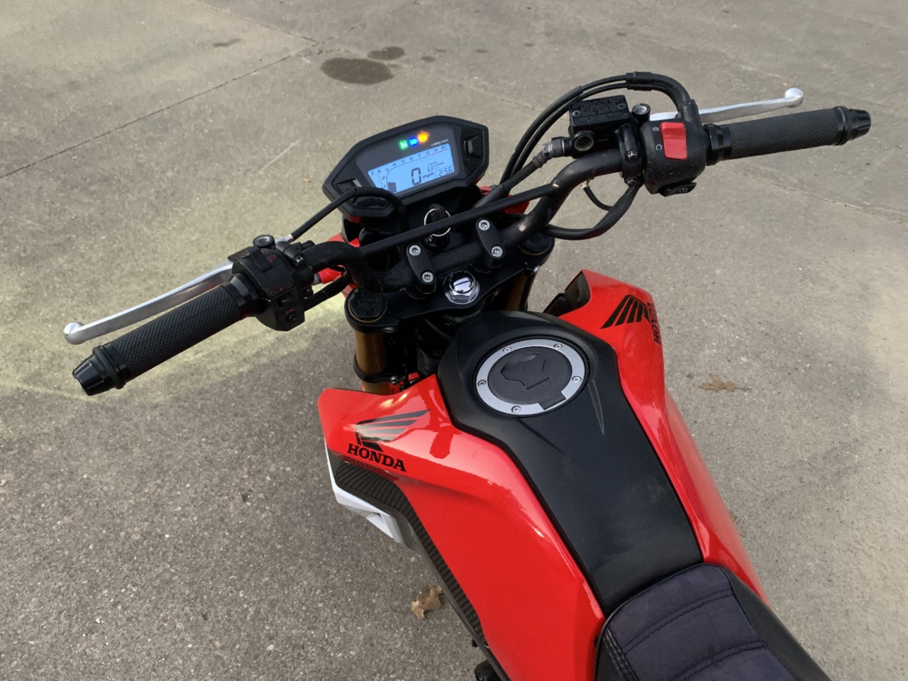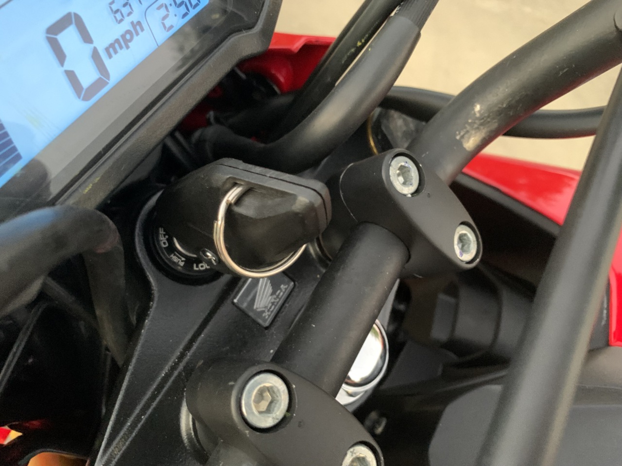 runs rides great ... few really light scratches over all super clean bike ... has good tires ... ride textile seat .... integrated tail light turn signals ... led front turn signals & factory led headlight super bright .... akrapovic carbon fiber exhaust light weight sounds great ... abs brakes ... it has bigger sprockets for more take off power so it throws the abs light off but everything still works fine .... came in with only 1 key - we make motorcycle keys while you wait .... see video