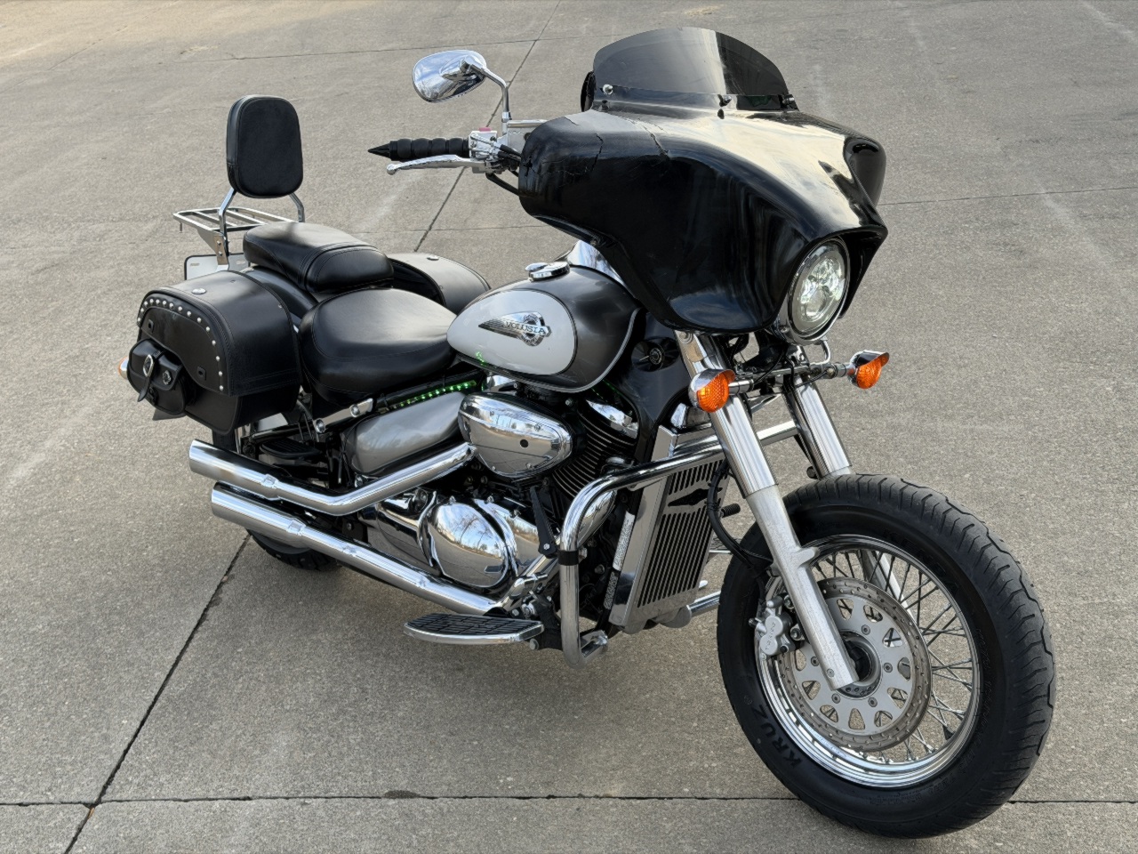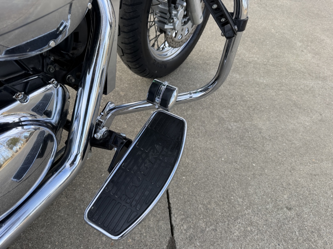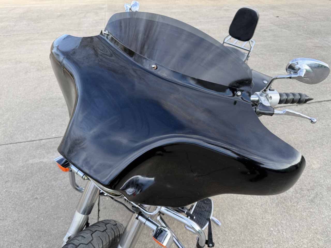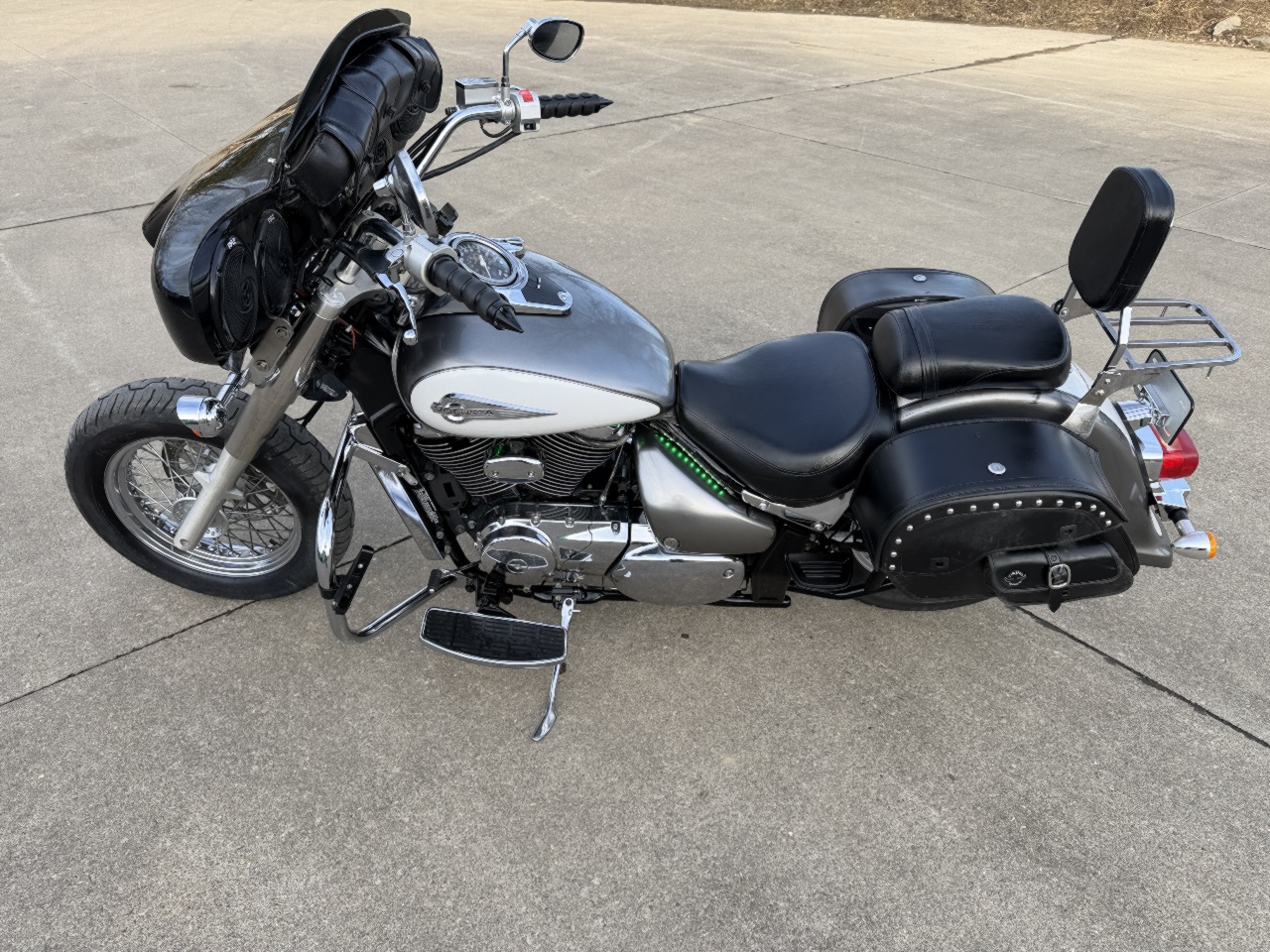 runs rides great .... missing front fender crack in fairing but the fairing was an added on extra anyways .... has good front tire new rear tire .... led headlight .... full fairing with pyle radio & speakers .... tinted windshield with bags ... cell phone holder with wireless charging .... custom grips ... floor boards front & rear .... highway bars with pegs ... viking saddlebags ... back rest with rack .... vance & hines exhaust sounds great .... brand new battery ready to go .... came in with only 1 key - we make motorcycle keys while you wait .... see video