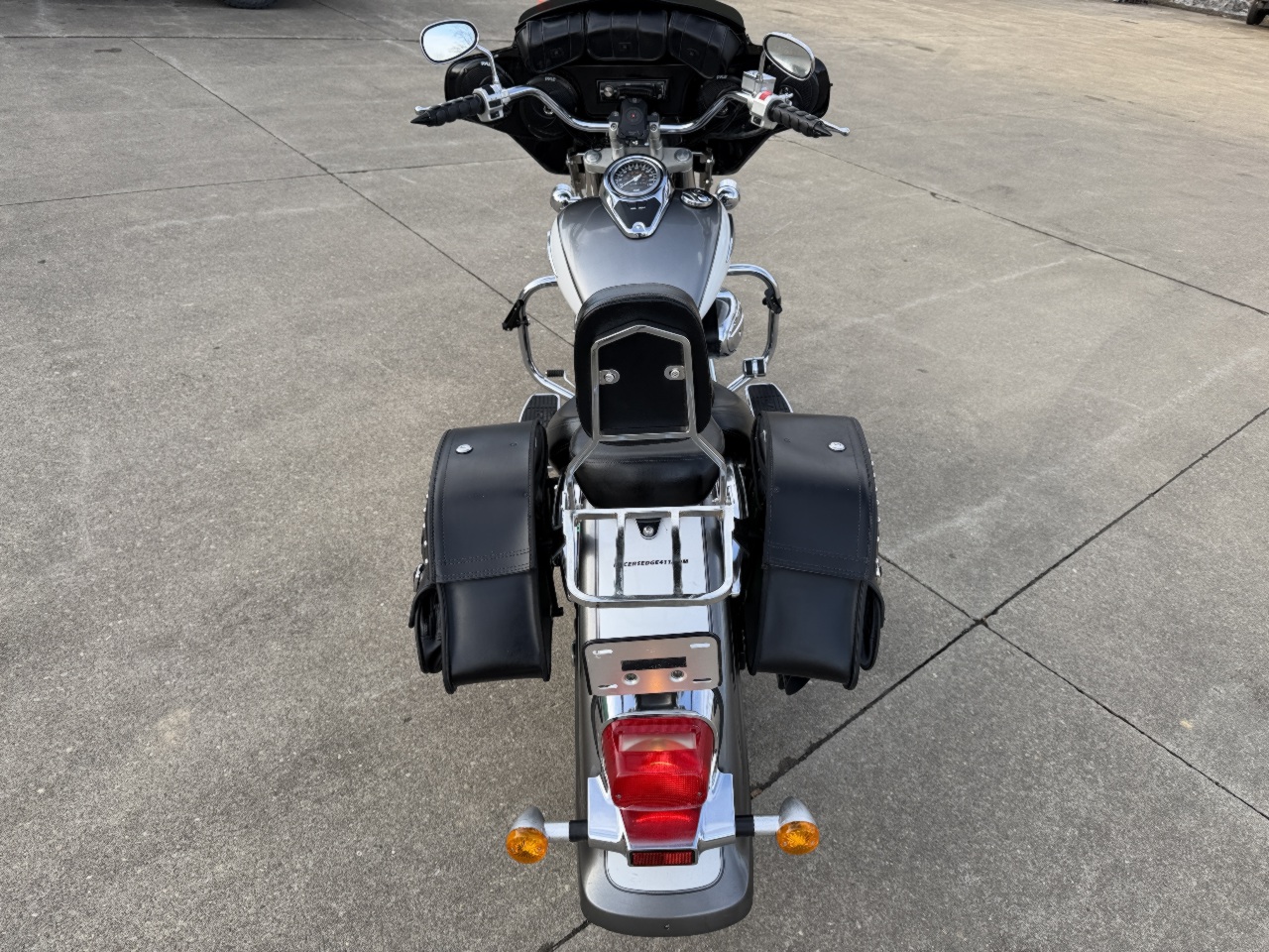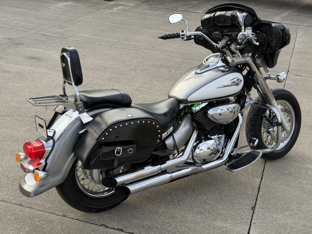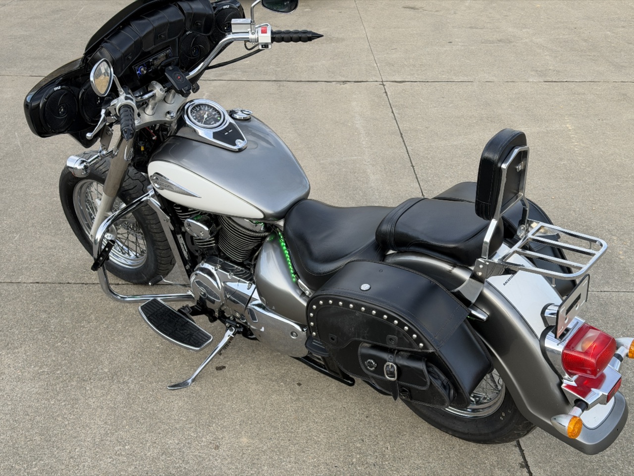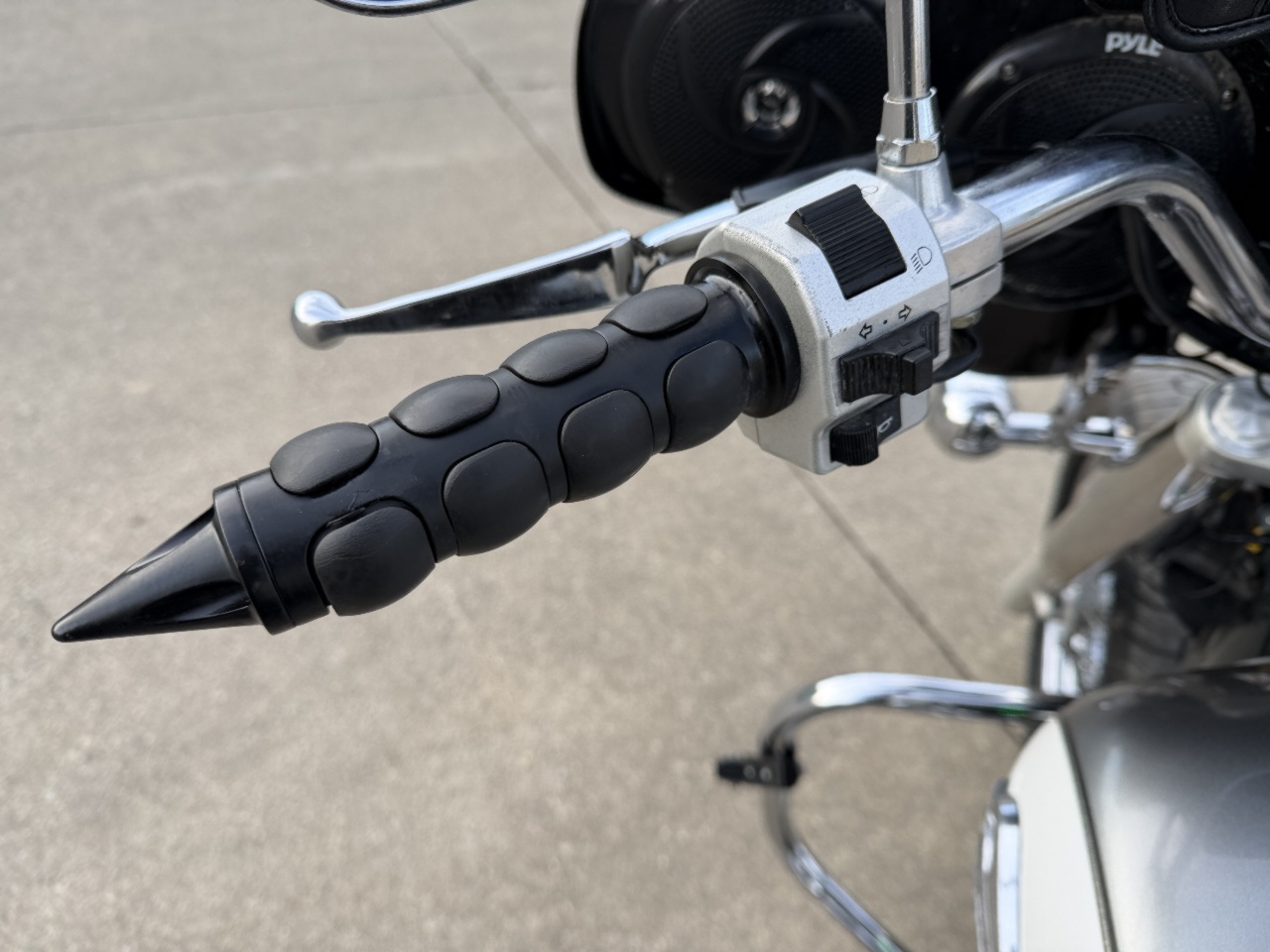 runs rides great .... missing front fender crack in fairing but the fairing was an added on extra anyways .... has good front tire new rear tire .... led headlight .... full fairing with pyle radio & speakers .... tinted windshield with bags ... cell phone holder with wireless charging .... custom grips ... floor boards front & rear .... highway bars with pegs ... viking saddlebags ... back rest with rack .... vance & hines exhaust sounds great .... brand new battery ready to go .... came in with only 1 key - we make motorcycle keys while you wait .... see video
