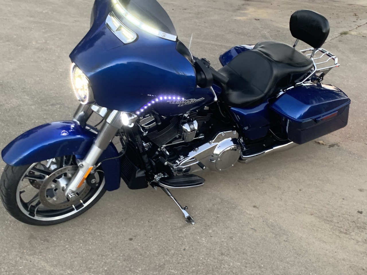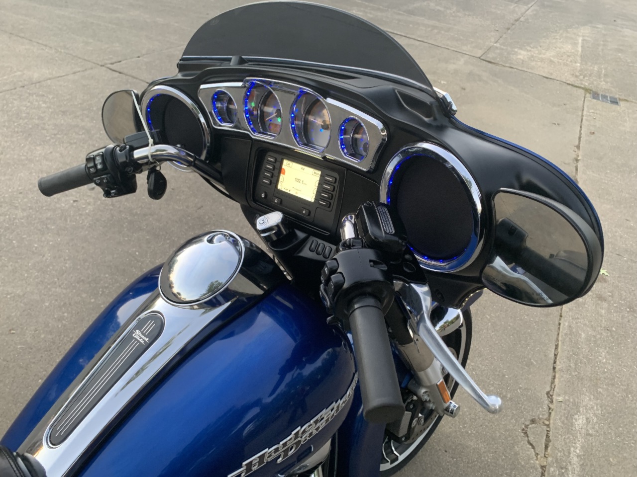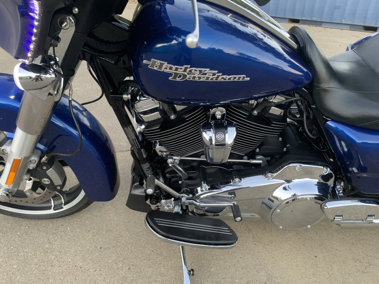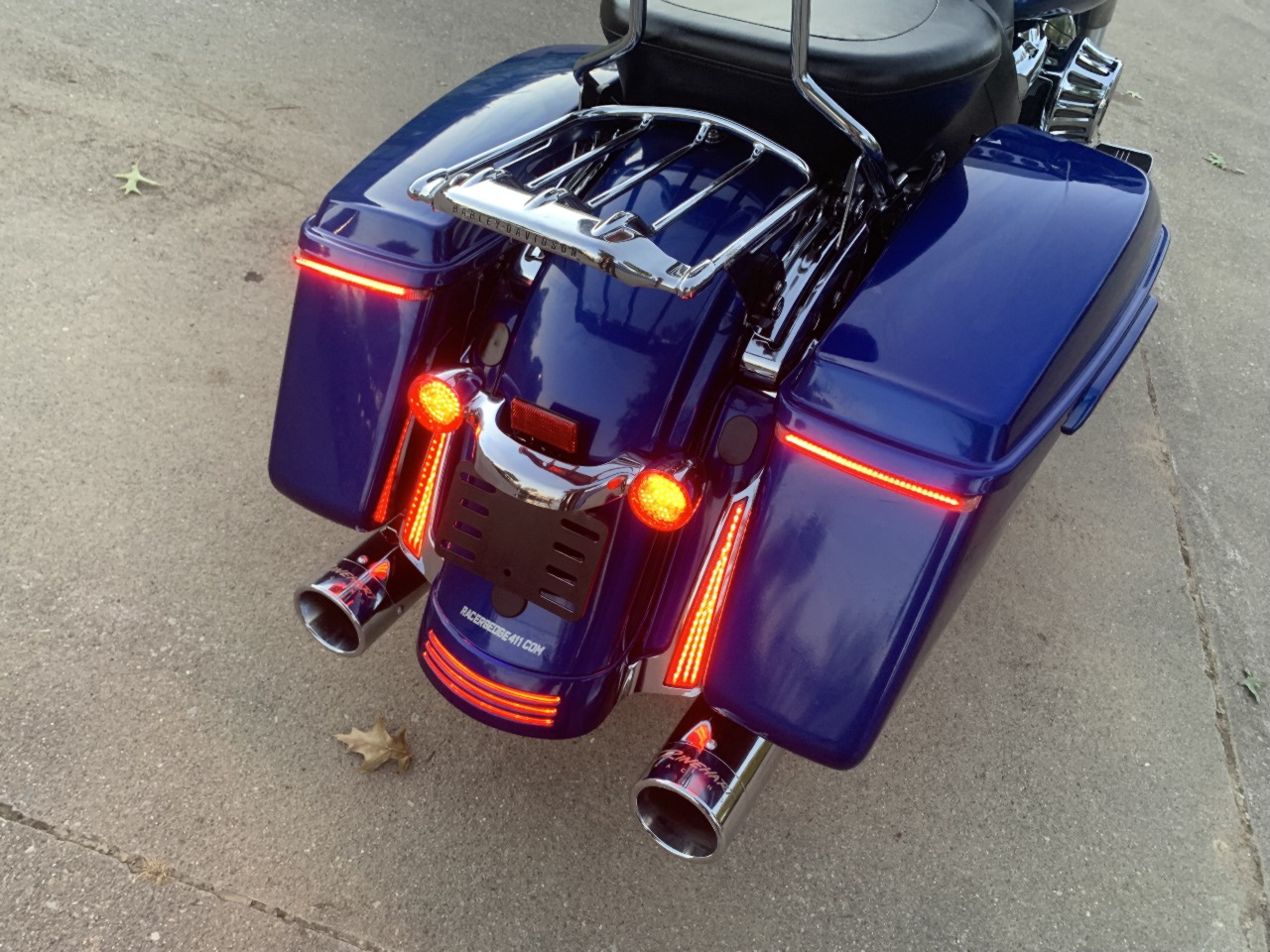 runs rides great .... has scratches cracked plastic left side but everything functions good .... has good tires .... low low miles ..... led headlight with effects super bright ... with led windshield light bar integrated turn signals & fairing strip led lights all led tail lights turns signals & filler lights & saddlebag strips its crazy how much this bike lights up ..... has the 107 with 6 speed with tuned fuel injection with rinehart true dual full exhaust system & hyper intake kit looks good sounds great & runs strong .... streamliner floor boards front & rear .... quick release back rest & rack .... blue light led chrome dash trim finishes this bike off as a one of a kind that turns heads & gets looks everywhere .... came in with only 1 fob & 1 key - we sell program harley security fobs & make keys while you wait ..... see video