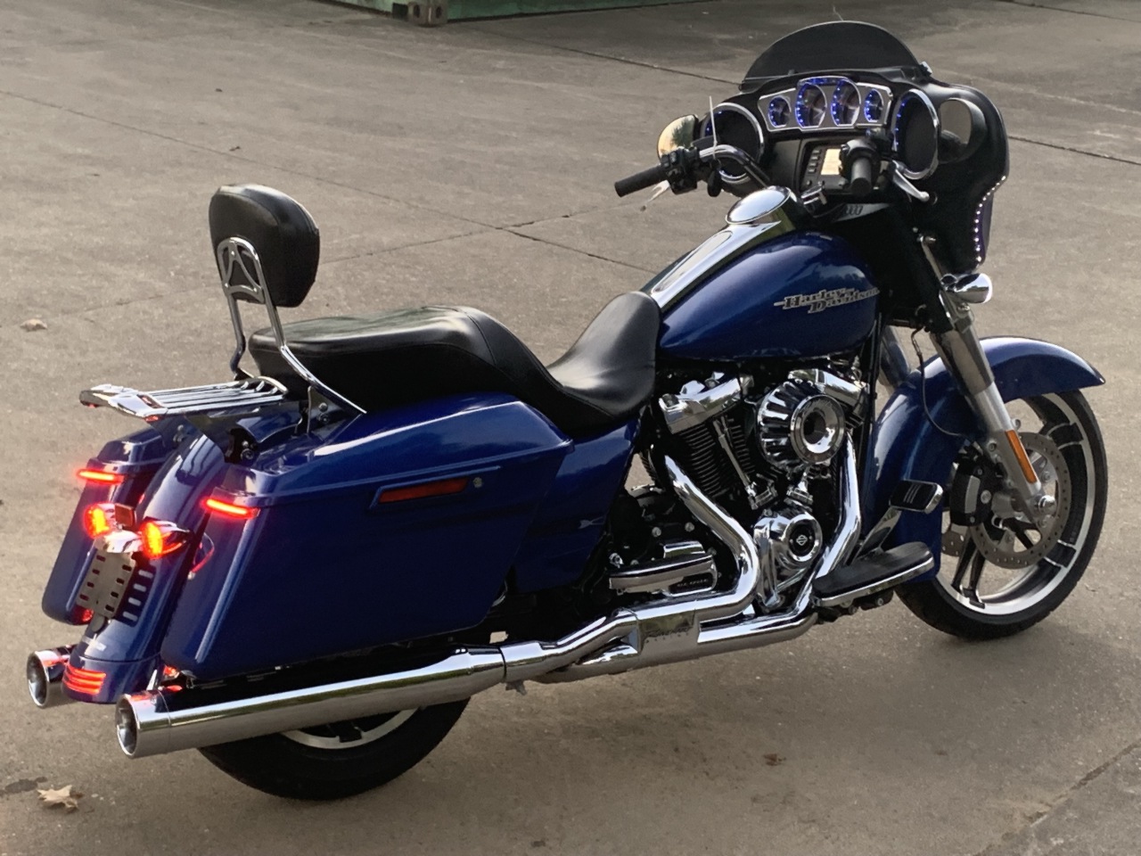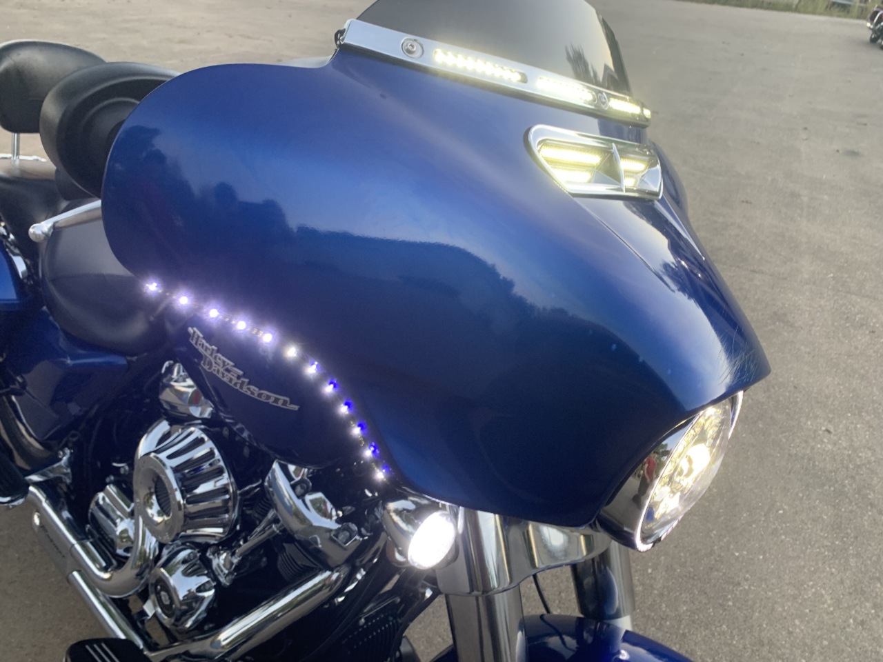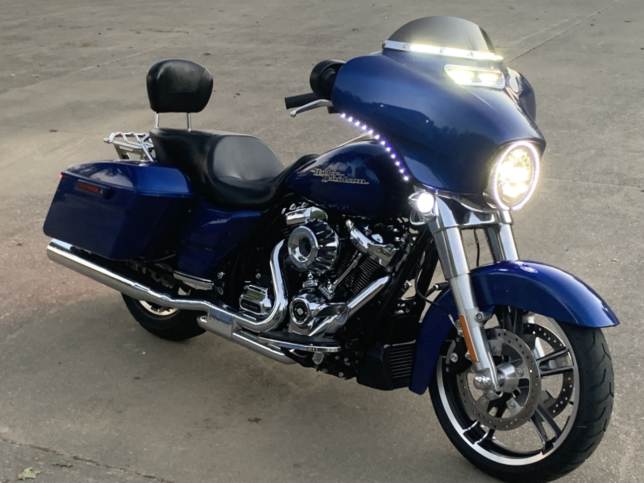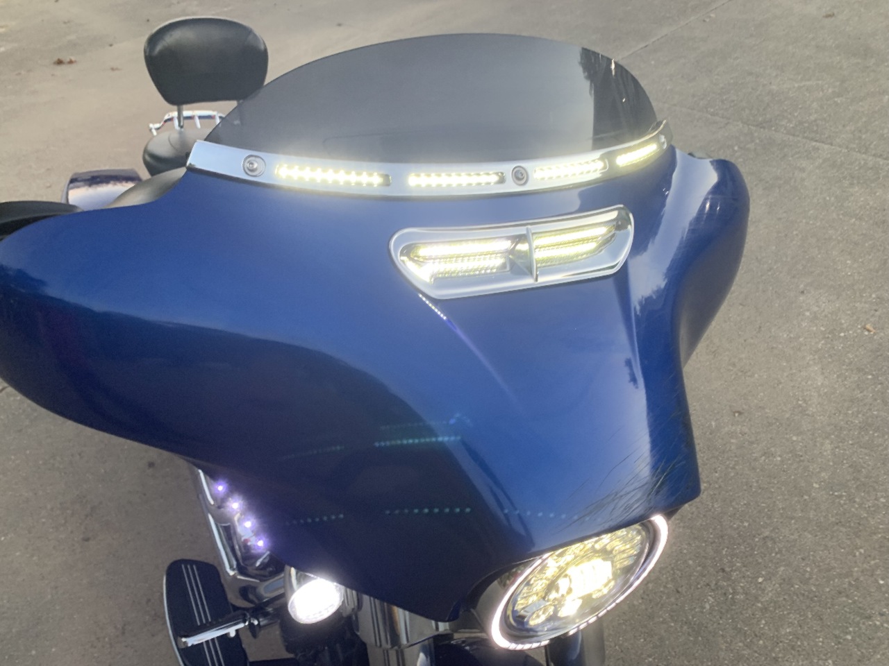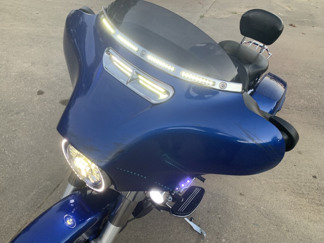 runs rides great .... has scratches cracked plastic left side but everything functions good .... has good tires .... low low miles ..... led headlight with effects super bright ... with led windshield light bar integrated turn signals & fairing strip led lights all led tail lights turns signals & filler lights & saddlebag strips its crazy how much this bike lights up ..... has the 107 with 6 speed with tuned fuel injection with rinehart true dual full exhaust system & hyper intake kit looks good sounds great & runs strong .... streamliner floor boards front & rear .... quick release back rest & rack .... blue light led chrome dash trim finishes this bike off as a one of a kind that turns heads & gets looks everywhere .... came in with only 1 fob & 1 key - we sell program harley security fobs & make keys while you wait ..... see video