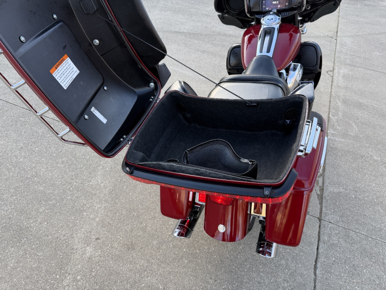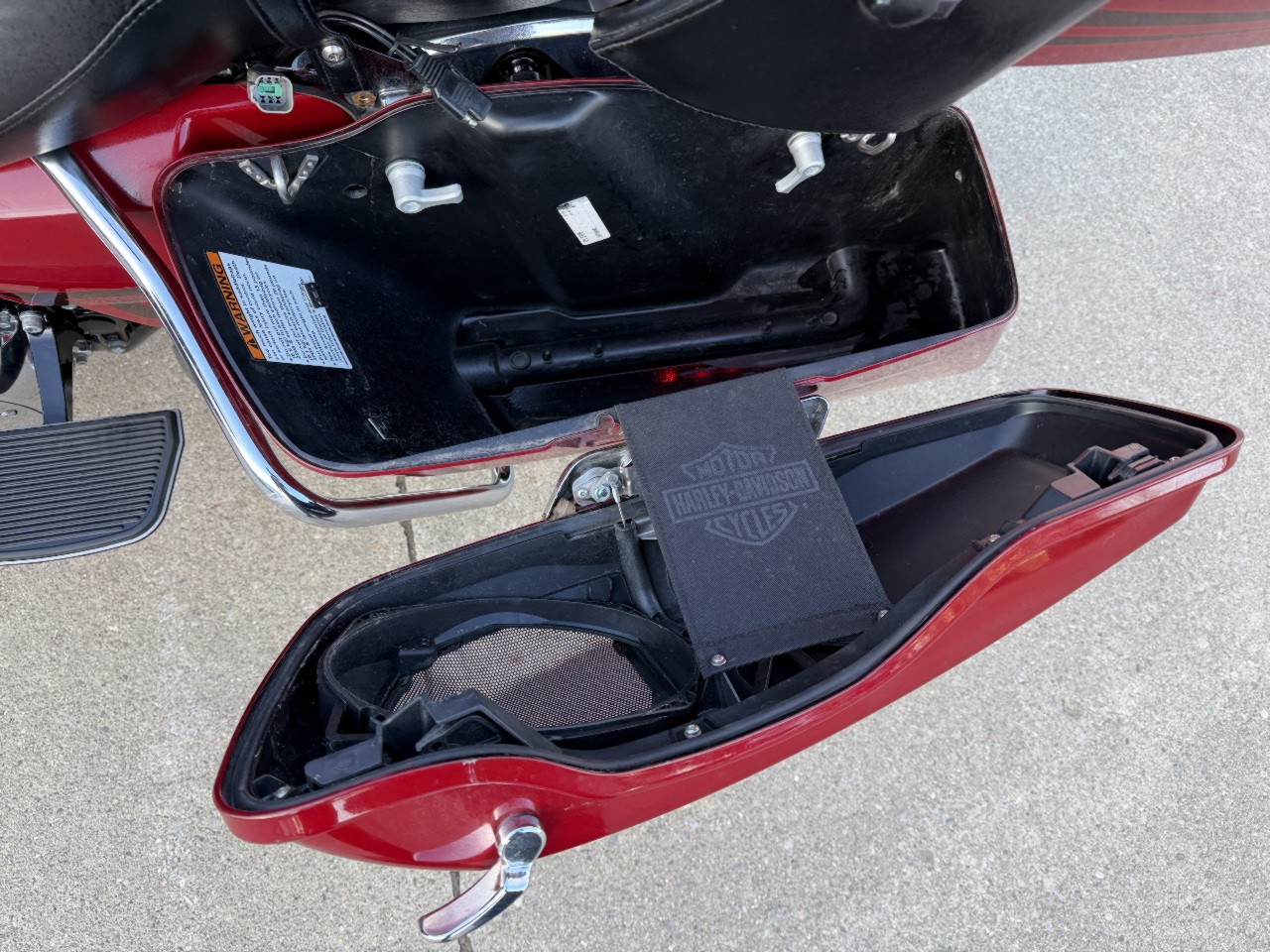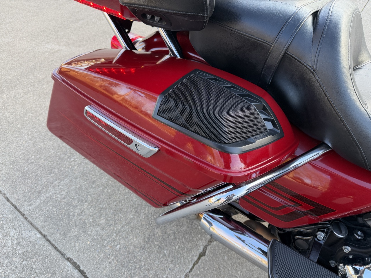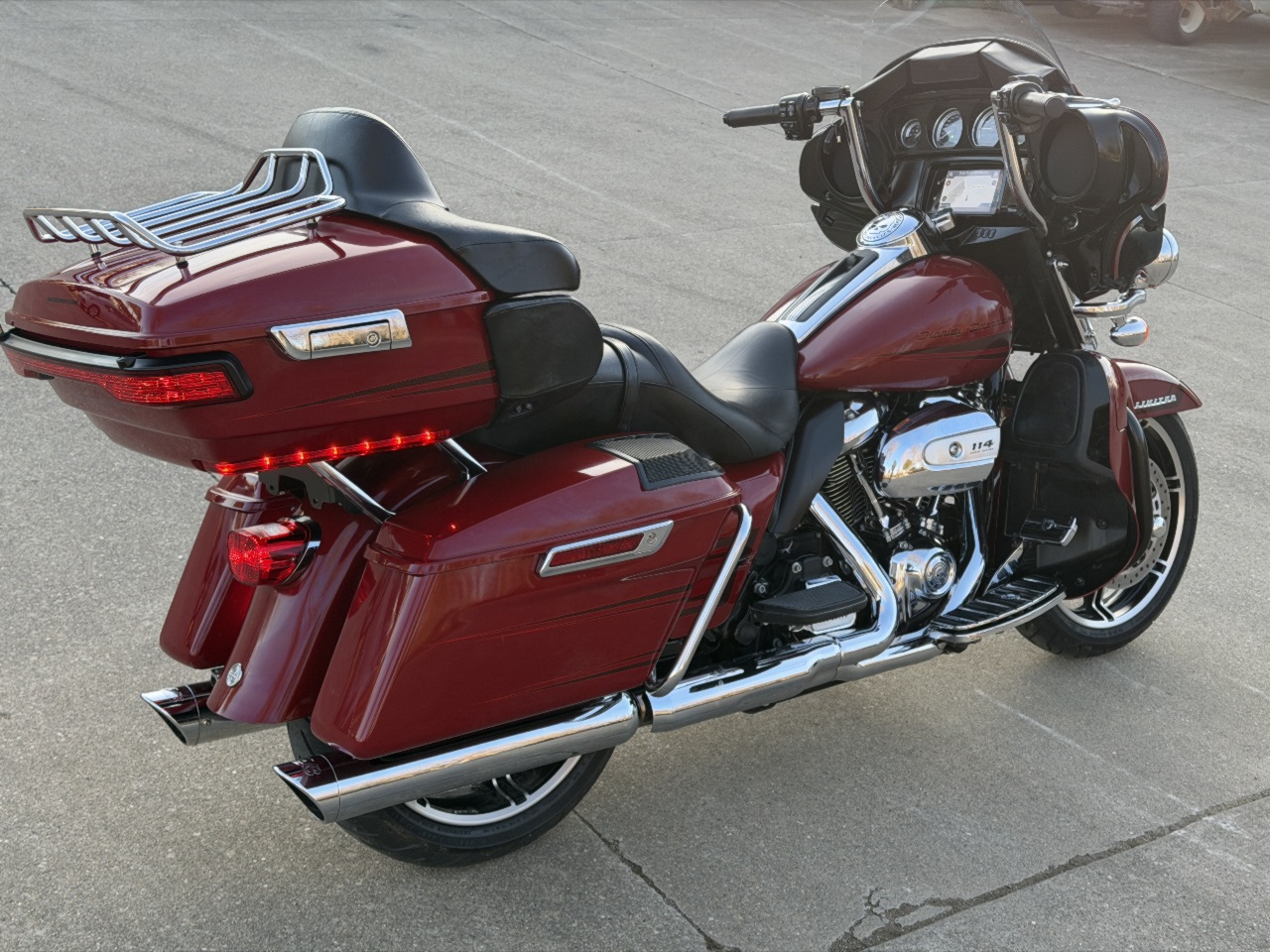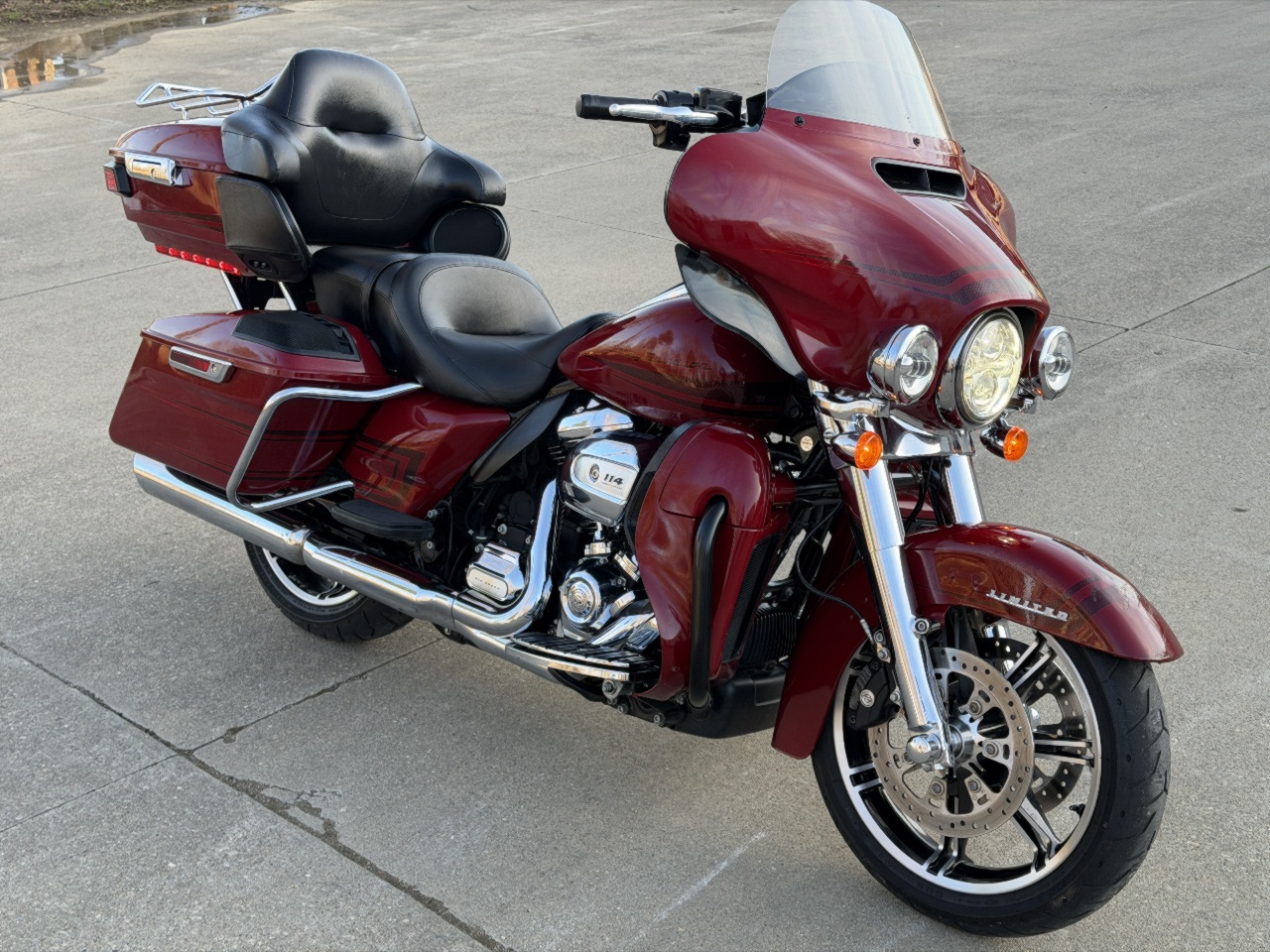 runs rides great .... dings on fenders scratches left side .... has good tires ... 114 with 6 speed tuned fuel injection with tab exhaust & stage 1 intake kit - sounds great .... seat heat shields .... willie-g floor boards caps etc .... chrome forks & axle caps ... tourpak rack & liner with 12v power outlet .... speaker lids already installed .... meethook handlebars .... heated grips ... touring windshield with hd magnetic close bags .... touch screen with blue tooth gps fuel bike info & more .... all led headlight & spots & filler strip lights .... came in with only 1 fob & 1 key - we sell & program harley fobs & make keys while you wait .... see video