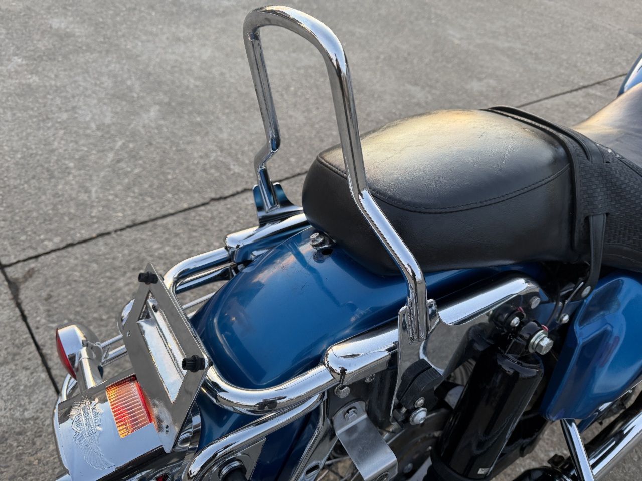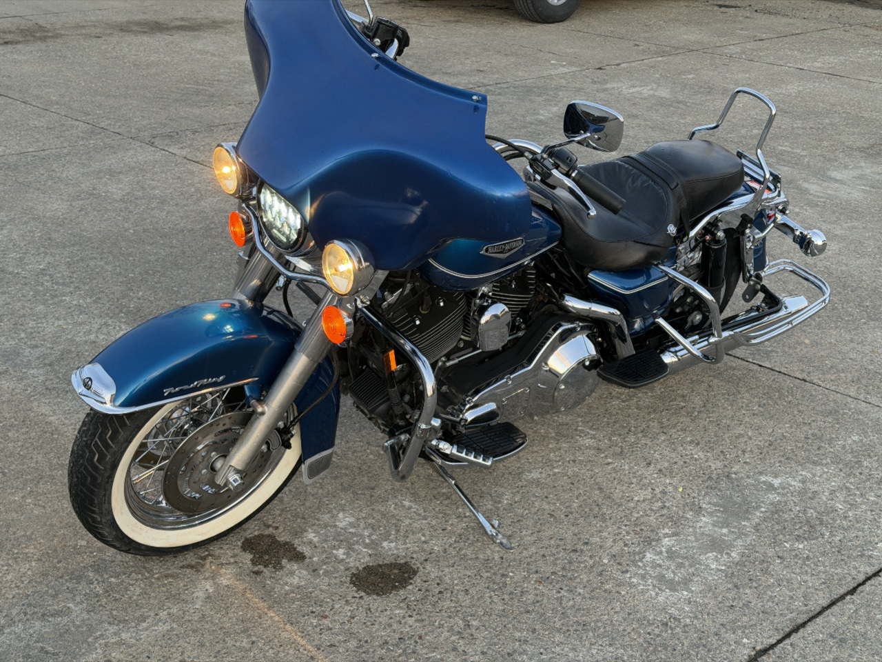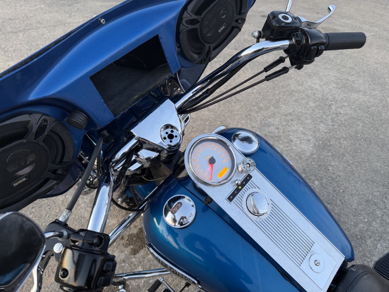 runs rides great .... came in with no saddlebags few dings on intake cover ..... has good front tire brand new rear tire .... led headlight .... chrome axle caps ... highway bars with pegs ... quick release fairing with 6x9 speakers no radio .... has low miles .... custom exhaust .... quick release back rest with harley quick docking mounts for a tourpak etc ..... brand new battery ready to go .... came in unlocked but no keys - we make harley keys while you wait anytime .... see video